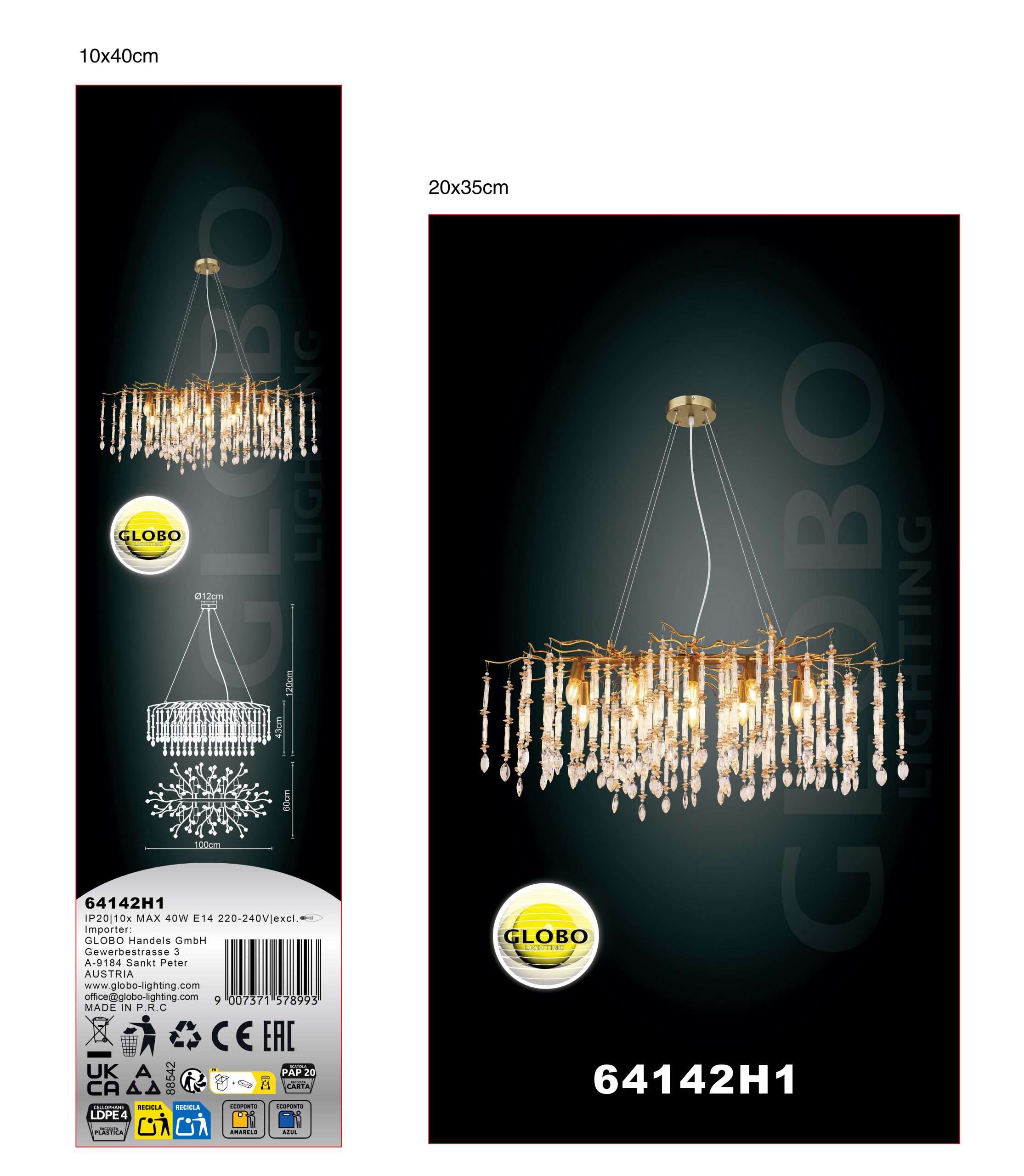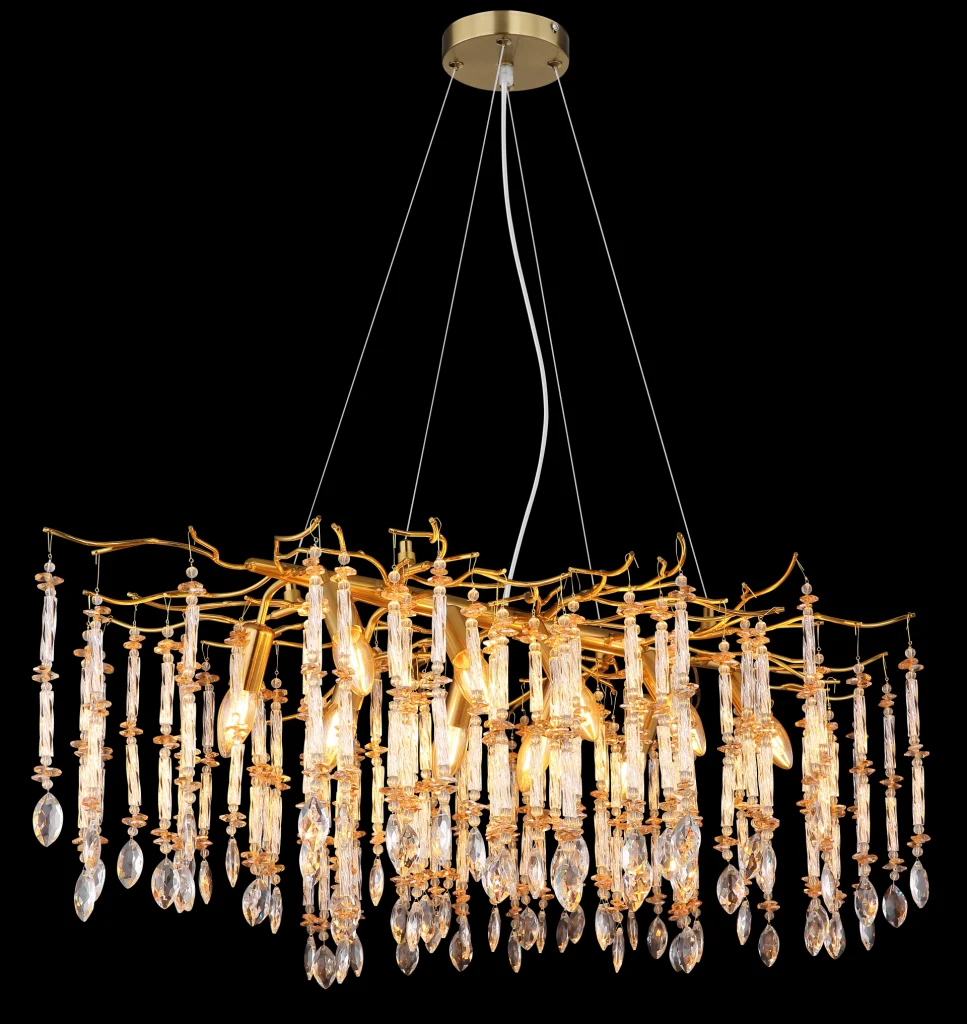 Ovalna plafonska lampa GLORIA kombinuje umetnički dizajn sa luksuznim šarmom. Mat zlatno metalno telo formira elegantnu osnovu za raskošni kristalni luster napravljen od providnih i staklenih kristala boje ćilibara koji impresivno prelamaju svetlost. Sa dužinom od 1000 mm i širinom od 600 mm, GLORIA stvara stilski akcenat u svakoj prostoriji i proizvodi toplu, privlačnu atmosferu. Pažljivo raspoređeni kristali daju lusteru blistav efekat, stvarajući glamurozno raspoloženje osvetljenja. Opremljena grlom E14 (bez sijalice), lampa nudi fleksibilnost u izboru izvora svetlosti, omogućavajući individualno podešavanje osvetljenosti i temperature boje. Visokokvalitetna izrada i pažljiv dizajn čine GLORIA savršenim izborom za dnevne ili recepcijske prostore koji traže eleganciju i stil sa posebnim karakterom. Pravi vrhunac za ljubitelje ekskluzivnog dizajna.