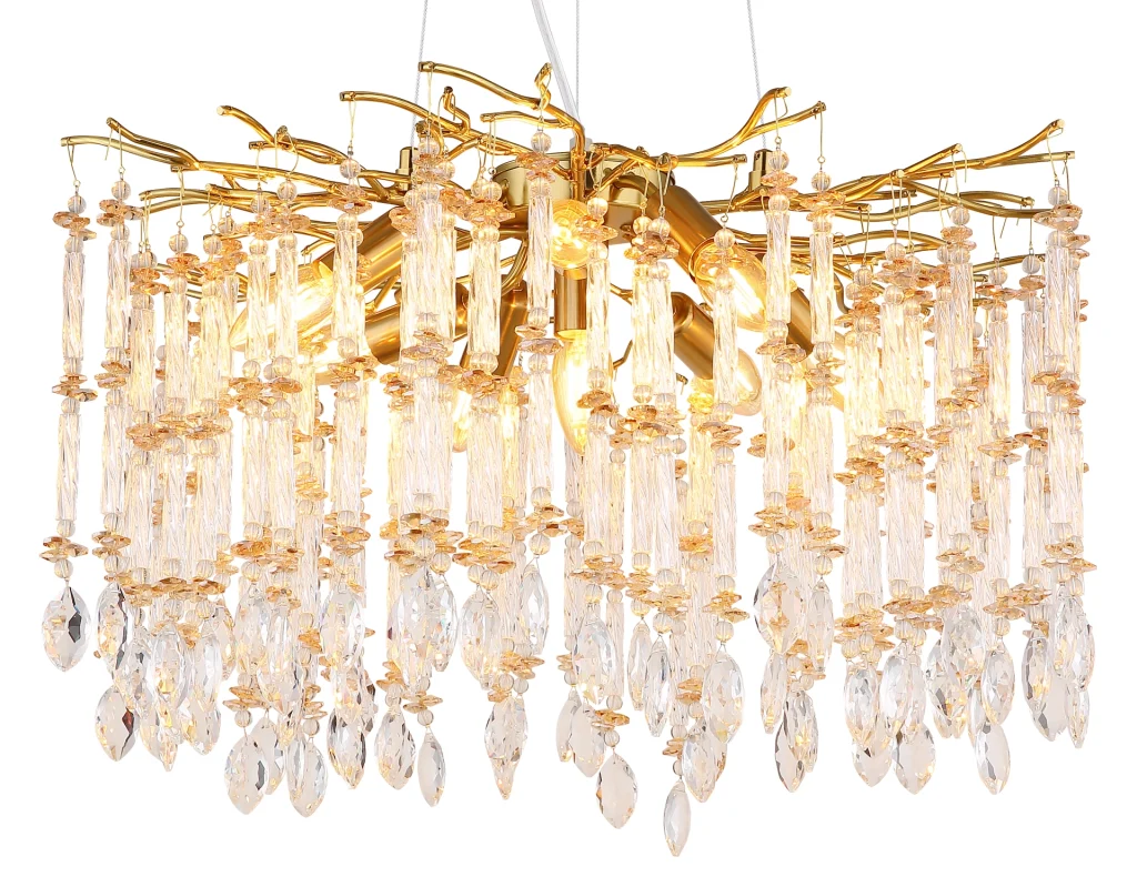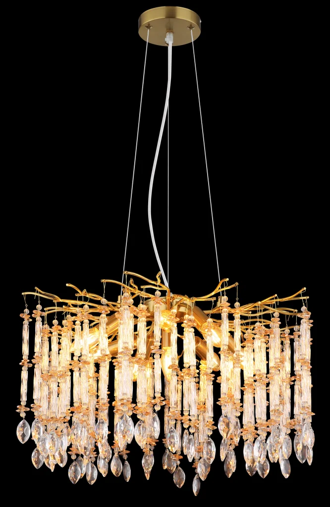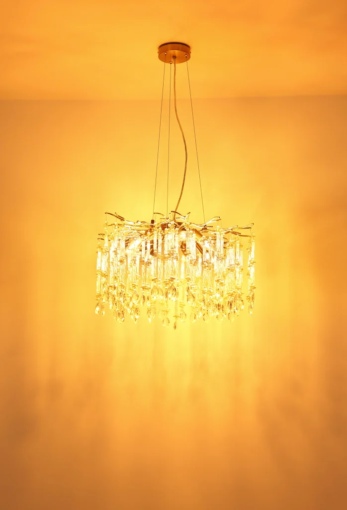 Okrugla plafonska lampa GLORIA kombinuje umetnički dizajn sa luksuznim šarmom. Mat zlatni metalni okvir čini elegantnu osnovu za raskošnu kristalnu dekoraciju napravljenu od providnih i ćilibarnih staklenih kristala koji prelepo prelamaju svetlost. Sa velikodušnim prečnikom od 600 mm, GLORIA stvara elegantan akcenat u svakoj prostoriji i neguje toplu, privlačnu atmosferu. Pažljivo raspoređeni kristali daju lusteru blistav efekat koji stvara glamurozno raspoloženje. Opremljena grlom E14 (sijalica nije uključena), GLORIA nudi fleksibilne opcije za izbor izvora svetlosti, omogućavajući individualno podešavanje osvetljenosti i temperature boje. Ova rasveta kombinuje visokokvalitetne materijale sa promišljenim dizajnom i savršen je izbor za dnevne ili recepcijske prostore koji traže eleganciju i stil sa posebnim šarmom.