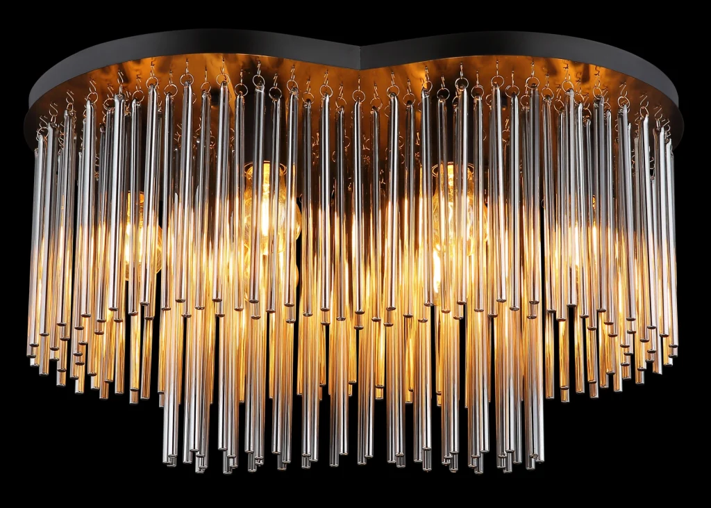 Plafonska lampa GORLEY impresionira svojim modernim dizajnom i jedinstvenim oblikom slova 8, koji vašoj sobi daje poseban dodir. Telo napravljeno od crnog, mat metala obezbeđuje elegantan i bezvremenski izgled, dok abažur napravljen od dimljenih staklenih šipki stvara fascinantnu igru svetlosti. Sa dužinom od 600 mm i širinom od 350 mm, lampa je savršena za veće prostorije i pruža ravnomerno osvetljenje. Kombinacija minimalističkog metalnog okvira i elegantnih staklenih šipki čini plafonsku lampu GORLEY pravom atrakcijom u vašem domu. Opremljena je grlom E27 tako da lampu možete opremiti odgovarajućom LED ili štedljivom lampom prema vašim potrebama. Ova lampa donosi i funkcionalno osvetljenje i stilski dizajn u vaše sobe.
