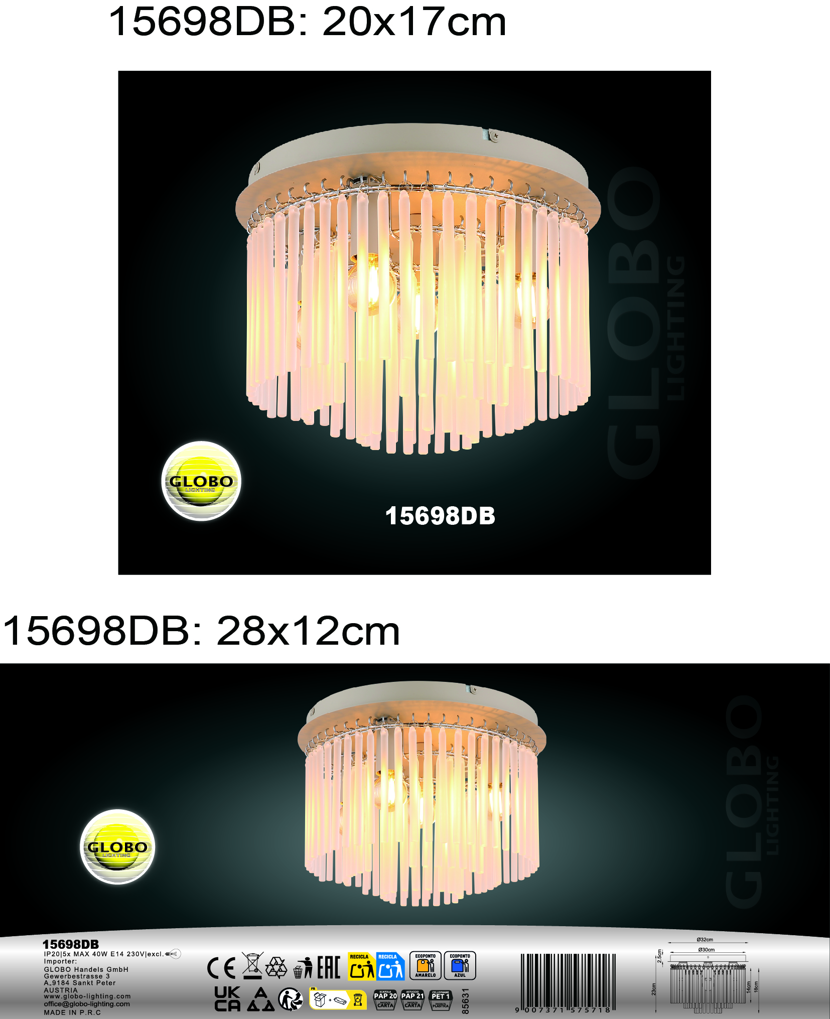 Okrugla plafonska lampa GORLEY impresionira svojim elegantnim i modernim dizajnom. Telo kombinuje mat crni metal sa hromiranim elementima, stvarajući stilski kontrast. Okrugli abažur se sastoji od staklenih šipki sa fascinantnim gradijentom od boje kupine preko crvene do providnog stakla. Ova kombinacija stvara poseban efekat osvetljenja i postavlja dekorativne akcente u svakoj prostoriji. Sa prečnikom od 320 mm, lampa je kompaktna i idealna za manje dnevne prostore, hodnike ili ulazne prostore. Viseća lampa je dizajnirana za E14 sijalice (sijalice nisu uključene), što vam omogućava da izaberete izvor svetlosti prema vašim potrebama. Visokokvalitetna izrada i harmonična interakcija materijala čine GORLEY stilskim elementom koji privlači pažnju i pruža prijatno i atmosfersko osvetljenje. Moderan dizajnerski vrhunac za svaku prostoriju.