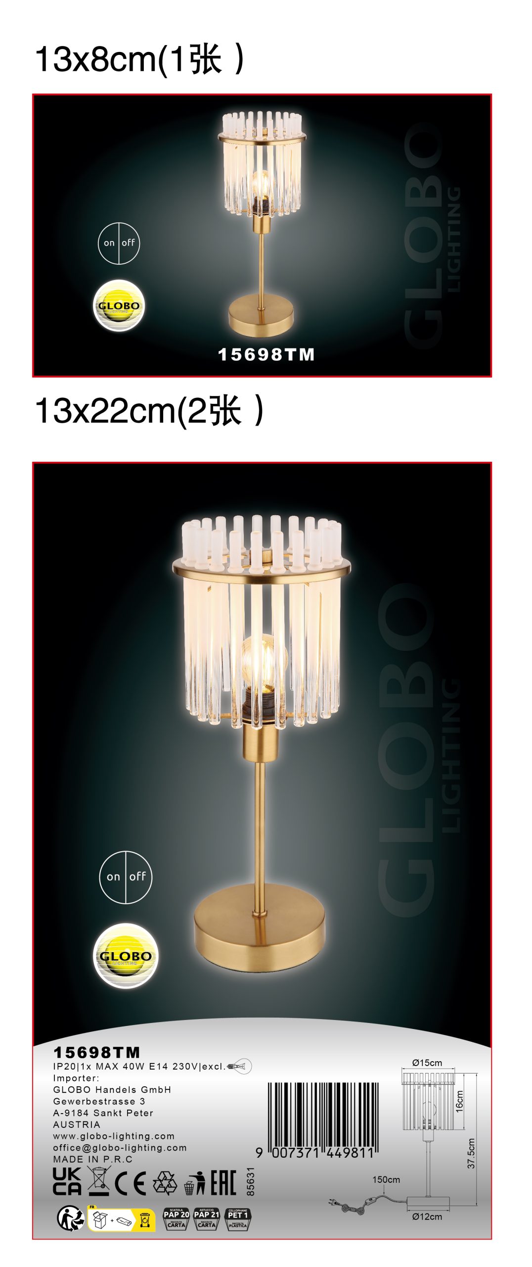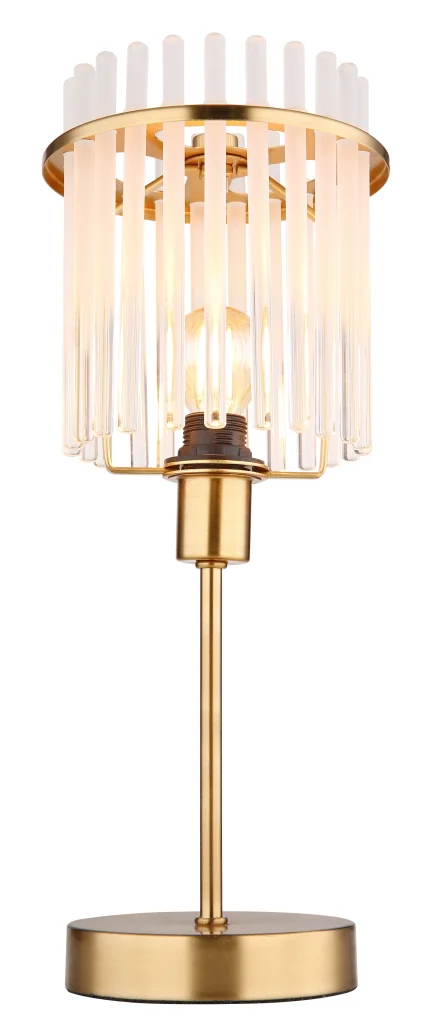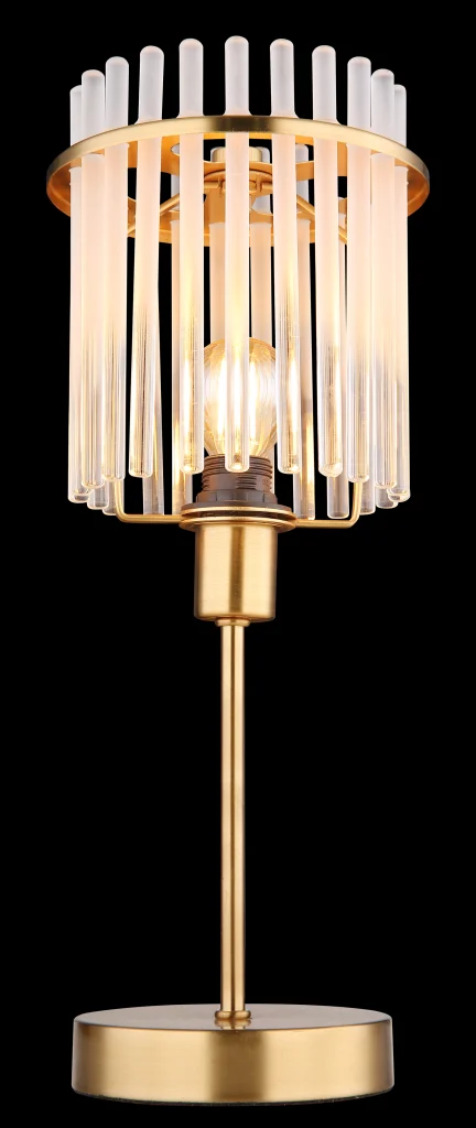 Stona lampa GORLEY je apsolutni vrhunac vašeg doma i svakoj prostoriji daje posebnu atmosferu. Abažur lampe je okrugao i sastoji se od opalnih, providnih staklenih šipki koje stvaraju blagi gradijent i emituju toplu svetlost. Telo stone lampe GORLEY je napravljeno od mat, zlatne boje metala i daje lampi elegantan izgled. Sa prečnikom od 150 mm, zauzima malo prostora na vašem stolu, a ipak je prava atrakcija. Prekidač na kablu vam omogućava udobno upravljanje svetiljkom. Bilo da je to dodatni izvor svetlosti na vašem stolu ili dekorativni element u dnevnoj sobi – stona lampa GORLEY postavlja akcente svuda i stvara prijatan ambijent. Otkrijte stonu lampu GORLEY i dozvolite sebi da vas očara njen šarm. Uživajte u toploj svetlosti i stilskom dizajnu ove lampe.