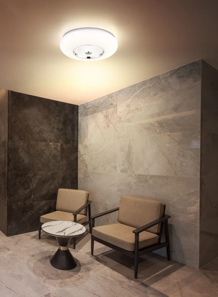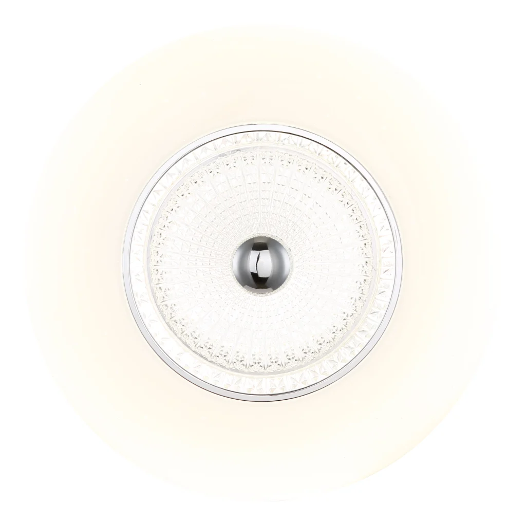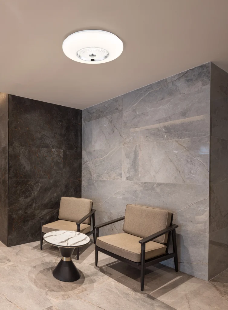 Okrugla plafonska lampa GRAHAM impresionira stilskom mešavinom modernog dizajna i funkcionalne tehnologije osvetljenja. Njeno mat belo metalno kućište upotpunjeno je opalnim plastičnim abažurom ukrašenim providnim akrilnim kristalima i hromiranim metalnim elementima. Ovaj prefinjeni dizajn pruža elegantnu interakciju svetlosti, dodajući dašak sofisticiranosti svakoj prostoriji. Sa prečnikom od 485 mm i svetlosnim snagama od 2.690 lumena, GRAHAM je idealan za veće prostore kao što su dnevni boravak ili trpezarija. Integrisana CCT tehnologija vam omogućava da podesite boju svetlosti od toplo bele (3000 K) do dnevne bele (6000 K), u skladu sa vašim raspoloženjem. Praktična funkcija memorije pamti vaše poslednje izabrano podešavanje, a boje se mogu fiksirati za prilagođene akcente osvetljenja. Ugrađena LED dioda je uključena i pruža energetsku efikasnost i dugotrajne performanse. GRAHAM je savršena plafonska lampa za stilsko, pametno osvetljenje.