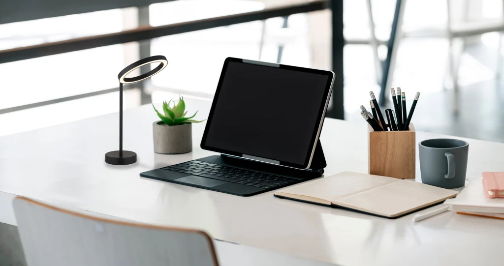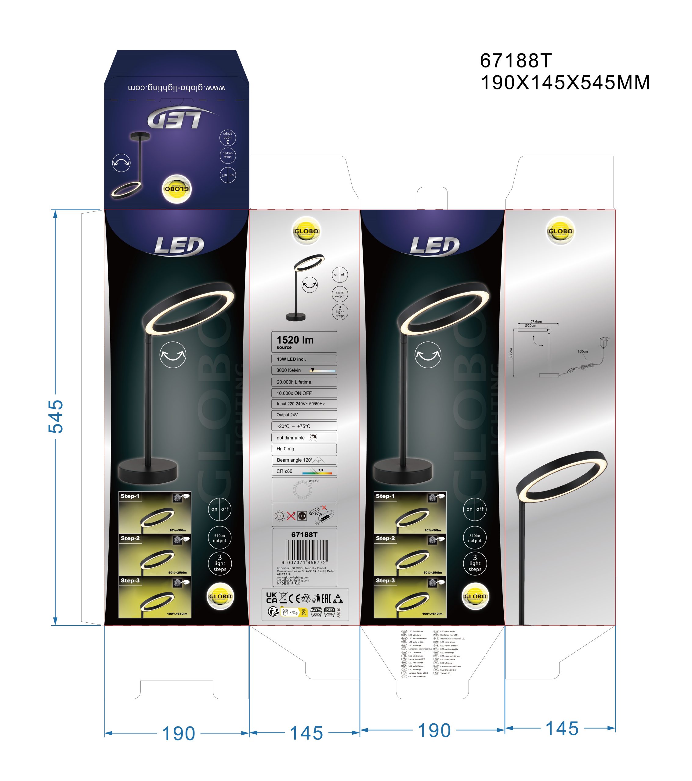 GRENIVIKS METALNA STONA LAMPA MAT CRNA je inovativna stona lampa koja se ističe svojom pokretnom konstrukcijom i jednim prstenom. Cev svetiljke je ravna i može se postaviti u različite položaje kako bi se svetlost prilagodila vašim potrebama. Telo je napravljeno od metala u mat crnoj boji, dok je abažur napravljen od aluminijuma u mat crnoj boji i opal plastike. Ovaj kombinovani efekat stvara moderan i čist izgled. GRENIVIKS METALNA STONA LAMPA MAT ima funkciju memorije koja automatski čuva lokaciju. Takođe ima menjač slavine za podešavanje svetlosnog izlaza. Sa izlazom od 510 lumena i temperaturom boje od 3000K, nudi prijatno svetlo koje se može koristiti i u domu i u poslovnom prostoru. Stona lampa je savršen dodatak za svaku dekoraciju koja kombinuje moderan dizajn i funkcionalnost.