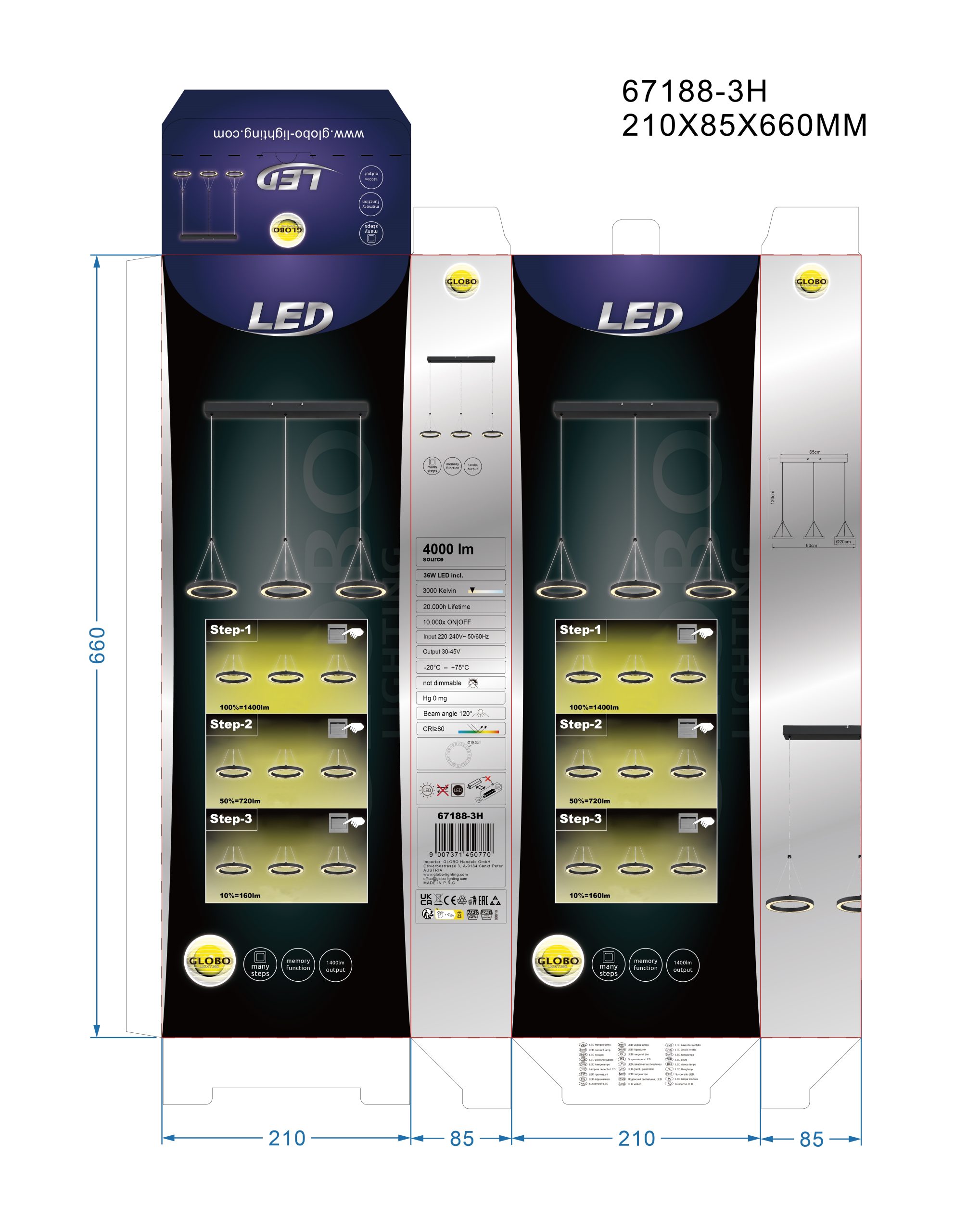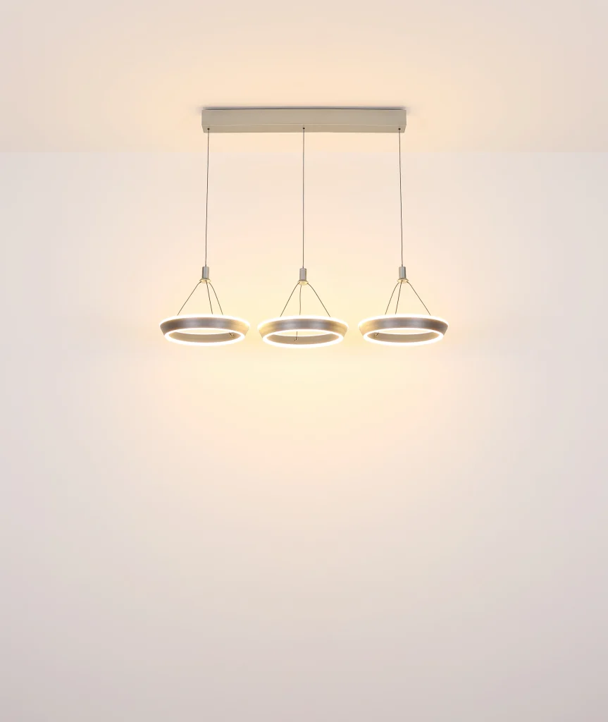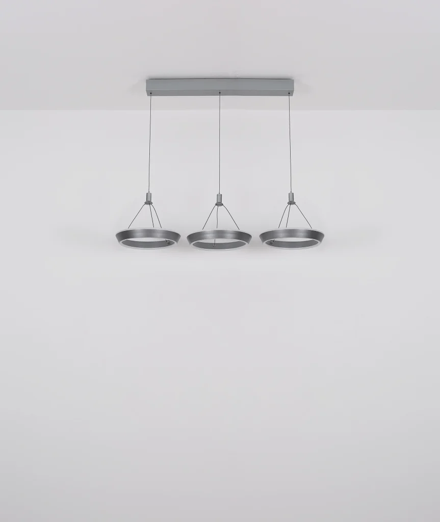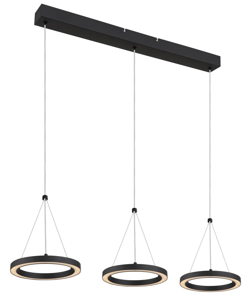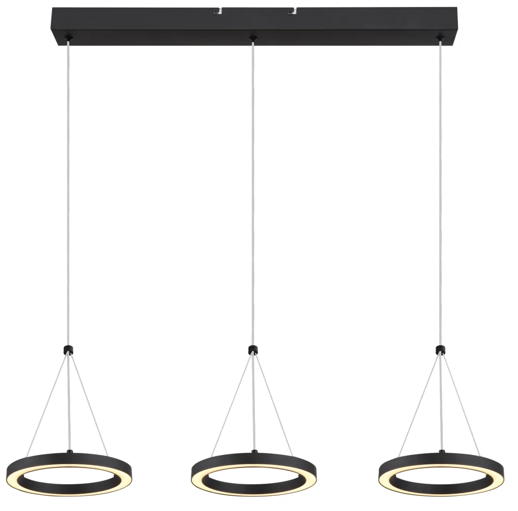 GRENVIX METALNA VISEĆA LAMPA CRNA MAT je ekskluzivna viseća lampa koja se ističe svojim elegantnim dizajnom i tri vešalice. Opora je ravna i nosi tri prstena koji stvaraju dugačak i elegantan oblik. Telo je napravljeno od metala u mat crnoj boji, dok je abažur napravljen od aluminijuma u mat crnoj boji i opal plastike. Ovaj kombinovani efekat stvara moderan i čist izgled. GRENVIX METALNA VISEĆA LAMPA CRNA MAT ima funkciju memorije koja automatski čuva lokaciju. Sa izlazom od 1430 lumena i temperaturom boje od 3000K, nudi prijatno svetlo koje se može koristiti i u ličnom i u poslovnom životu. Viseća lampa je savršen dodatak za svaku dekoraciju koja kombinuje moderan dizajn i funkcionalnost.