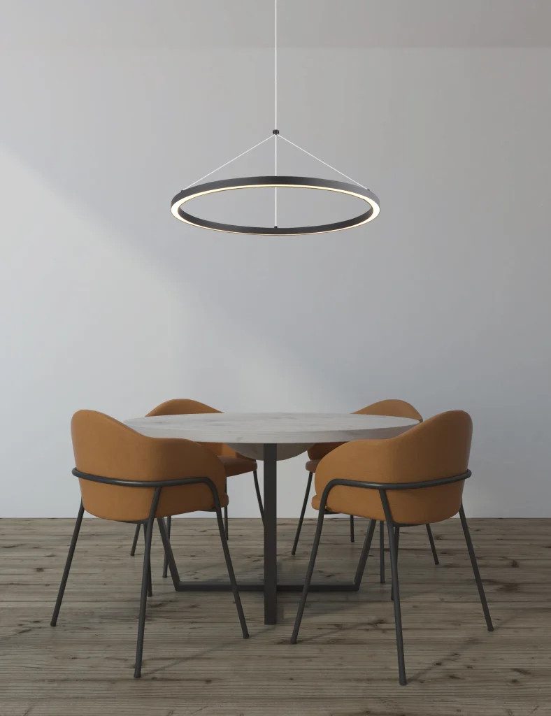 GRENVIX METALNA VISEĆA LAMPA CRNA MAT je jedinstvena viseća lampa koja se ističe svojim okruglim oblikom i jednim prstenom. Zakrivljenost lampe joj daje elegantan i skladan izgled. Telo je napravljeno od metala u mat crnoj boji, dok je abažur napravljen od aluminijuma u mat crnoj boji i opal plastike. Ovaj kombinovani efekat stvara moderan i čist izgled. GRENVIX METALNA VISEĆA LAMPA CRNA MAT ima funkciju memorije koja automatski čuva lokaciju. Sa prečnikom od 500 mm i izlazom od 1400 lumena, nudi prijatno svetlo koje se može koristiti i u privatnom i u poslovnom životu. Viseća lampa je savršen dodatak za svaku dekoraciju koja kombinuje moderan dizajn i funkcionalnost.
