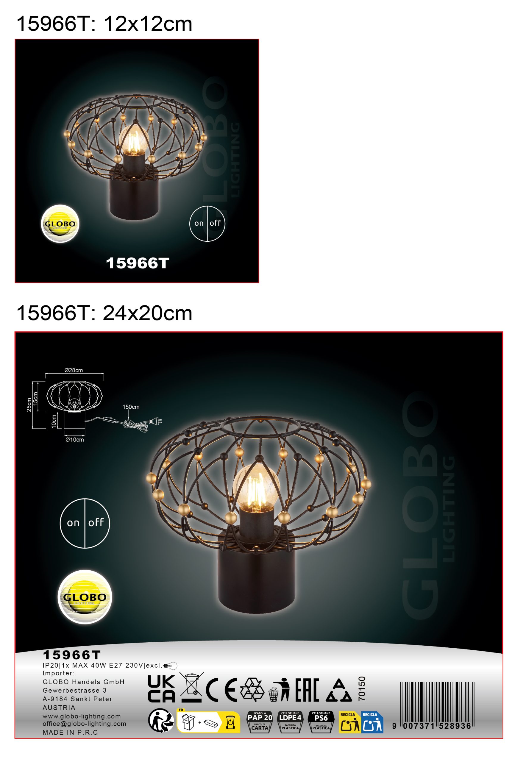 Stona lampa GRAYS u vintage stilu postavlja elegantne akcente u vašem domu. Sa svojim okruglim metalnim mrežastim abažurom u mat crnoj boji i zlatnim dekorativnim kuglicama, svakoj prostoriji daje toplu, privlačnu atmosferu. Crno metalno kućište se savršeno usklađuje sa nežnim detaljima abažura, što dizajnu daje elegantan izgled. Praktični prekidač na kablu omogućava lako uključivanje i isključivanje, dok prečnik od 280 mm čini lampu idealnim dodatkom za komode, noćne stočiće ili male police. Sa E27 grlom možete odabrati pravu sijalicu da biste stvorili željeni ambijent osvetljenja. Isporuka bez E27 sijalica. Stona lampa GREYS kombinuje vintage šarm sa modernim dizajnom i postavlja stilske akcente u vašem životnom prostoru.