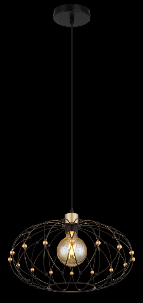 Viseća lampa GRAYS u vintage stilu unosi industrijski šarm i elegantnu eleganciju u svaku prostoriju. Sa svojim okruglim metalnim mrežastim abažurom u mat crnoj boji i dekorativnim kuglicama zlatne boje, vešto kombinuje moderan dizajn sa klasičnim akcentima. Crno metalno kućište stvara upečatljiv, ali suptilan kontrast sa nežnim detaljima abažura, čineći lampu zaista privlačnom za pažnju. Sa prečnikom od 400 mm, ova viseća lampa je idealna za trpezarijske stolove, dnevne sobe ili hodnike i pruža prijatno, indirektno osvetljenje. Grlo E27 omogućava izbor odgovarajuće sijalice i podešavanje intenziteta svetlosti po želji. Isporuka bez sijalica E27. Viseća lampa GRAYS daje vašem domu šarmantnu mešavinu vintage retro i modernog stila, što je čini savršenim izborom za stilsko osvetljenje sobe.