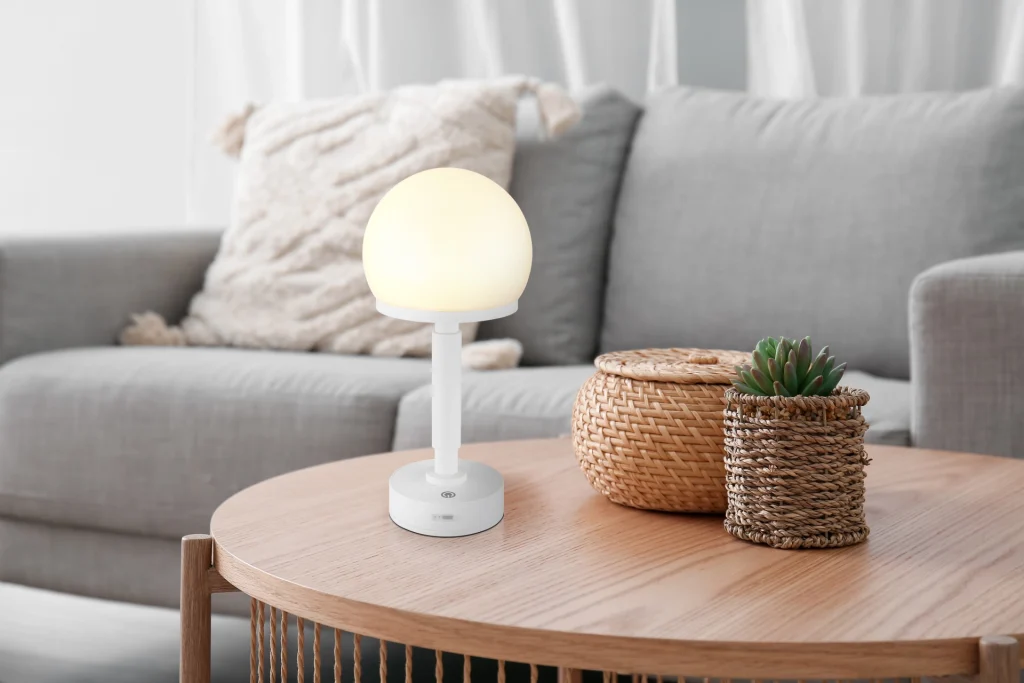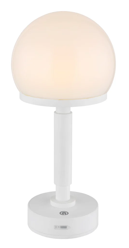 Stona lampa HAKU u mat beloj boji napravljena od plastike kombinuje moderan dizajn sa praktičnim funkcijama. Sa svojim okruglim oblikom, ravnom cevi i hemisferom, zrači bezvremenskom elegancijom. Opalni plastični abažur obezbeđuje ravnomernu raspodelu svetlosti i stvara prijatnu atmosferu u prostoriji. Ugrađeni dodirni dimer vam omogućava da podesite osvetljenost lampe po želji, dok priloženi USB kabl za punjenje obezbeđuje lako punjenje. Stona lampa nudi svetlosni fluks od 60 lumena i toplu temperaturu boje od 3000 Kelvina, idealno za atmosfersko osvetljenje u različitim dnevnim prostorijama. Vreme punjenja je oko 4 sata, a vreme osvetljenja traje oko 6 sati, pri čemu se svetlo može koristiti čak i tokom punjenja. Ova stona lampa je savršena za noćne stočiće, radne stolove ili kao dekorativni element na bočnim stočićima, gde kombinuje funkcionalnost sa estetskim standardima.