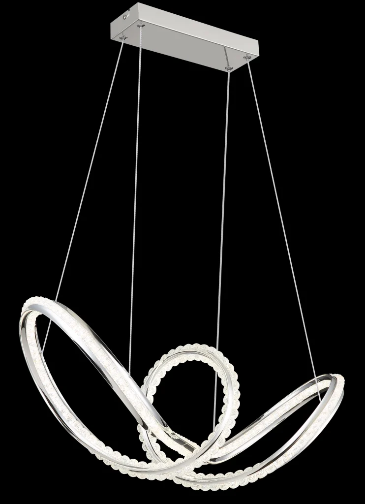 Zakrivljena viseća lampa impresionira svojim modernim dizajnom sa elegantnim petljama i čvorovima. Hromirano metalno kućište daje lampi visokokvalitetan, sjajan izgled, dok hromirani aluminijumski abažur u kombinaciji sa providnim akrilom obezbeđuje ravnomernu i stilsku raspodelu svetlosti. Sa dužinom od 600 mm i širinom od 260 mm, ova lampa je idealna za trpezarije, dnevne prostore ili hodnike. Viseća lampa uključuje integrisanu LED diodu (uključenu) koja isporučuje 2250 lumena sa podesivom temperaturom boje od 2700 K do 6000 K. Sa daljinskim upravljačem, funkcijom prigušivanja, fiksnim bojama i funkcijom memorije, nudi maksimalnu fleksibilnost i udobnost. Integrisano noćno svetlo upotpunjuje njenu funkcionalnost. Ova lampa kombinuje moderan dizajn, inovativnu LED tehnologiju i vrhunske materijale kako bi stvorila pravi centralni deo.