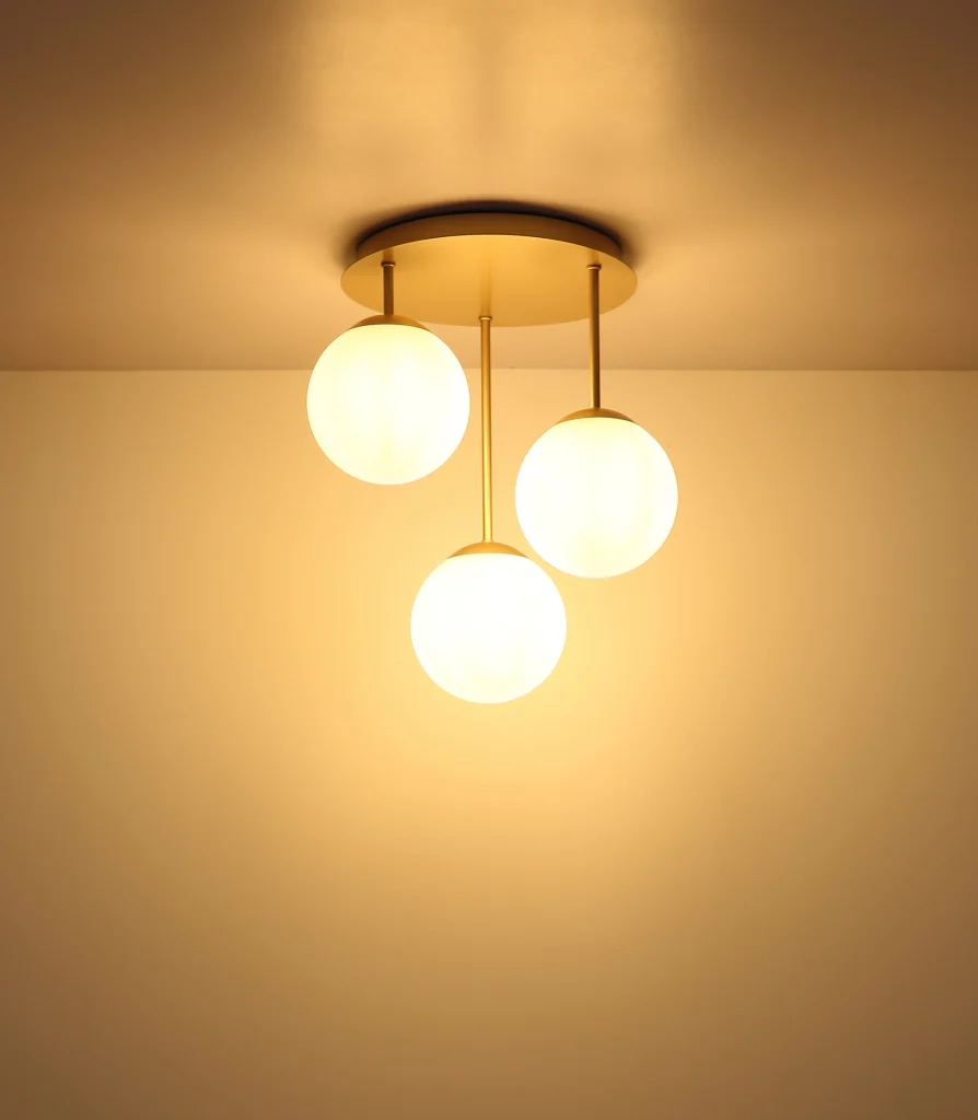 Okrugla plafonska svetiljka HARMON impresionira elegantnim, modernim dizajnom sa tri štapa različitih dužina i stilskim sferama od opalnog stakla. Matirano metalno kućište boje šampanjca daje svetiljci prefinjen, topao izgled, čineći je harmoničnom fokusnom tačkom u dnevnim sobama, spavaćim sobama ili hodnicima. Kugle od opalnog stakla obezbeđuju ravnomernu raspodelu svetlosti bez odsjaja i stvaraju prijatnu, ugodnu atmosferu. Stupenasti raspored štapova dodaje dinamičan izgled koji svetlosti daje osećaj lakoće i sofisticiranosti. Sa prečnikom od 340 mm, HARMON je idealan za male do srednje prostorije. Izvor svetlosti nije uključen i kompatibilan je sa E14 LED sijalicama.