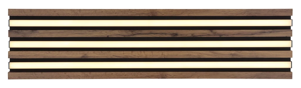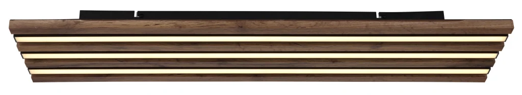 Pravougaona plafonska lampa HAYDEN karakteriše se modernim izgledom akustičnih panela i unosi stilsku eleganciju u svaku prostoriju. Telo je napravljeno od mat crnog metala, u kombinaciji sa tamnim MDF drvenim izgledom, što daje topao, plemenit izgled. Abažur je napravljen od mat aluminijuma i opal plastike i obezbeđuje ravnomernu, prijatnu raspodelu svetlosti. Sa osvetljenošću od 1500 lumena i temperaturom boje od 3000 K (LED), ova svetiljka je idealna za dnevne i radne prostore. Plafonska lampa HAYDEN kombinuje estetski dizajn sa funkcionalnošću i visokokvalitetnom izradom.
