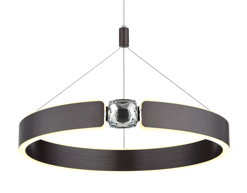 Viseća lampa HENDRICKS impresionira svojim elegantnim dizajnom i prstenom ukrašenim kristalima od providnog stakla. Telo napravljeno od brušenog metala bronzane boje daje lampi elegantan izgled, što je savršen dodatak i modernim i klasičnim enterijerima. Abažur je napravljen od bronzanog, brušenog akrila i opal akrila, što obezbeđuje ravnomernu i prijatnu raspodelu svetlosti. Sa prečnikom od 400 mm, ova viseća lampa je idealna za male do srednje velike prostorije, kao što su trpezarijski stolovi, dnevne sobe ili hodnici. Nudi lumenski izlaz od 960 lumena i temperaturu boje od 3000 K, što pruža toplo belo, prijatno svetlo. Zahvaljujući integrisanoj LED tehnologiji, viseća lampa HENDRICKS je posebno energetski efikasna i izdržljiva. Postavlja stilske akcente i stvara privlačnu atmosferu u vašem domu.