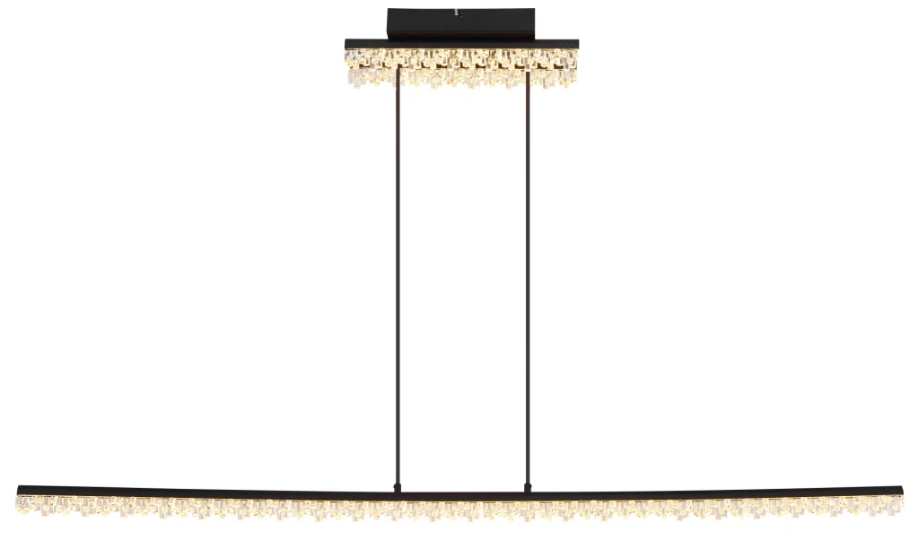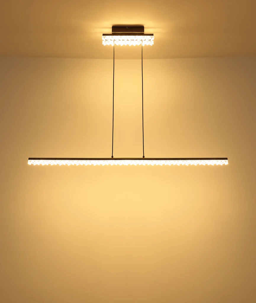 Viseća lampa HILTON impresionira svojim elegantnim dizajnom i blistavim kristalnim dekorom. Pravi snop od mat crnog lakiranog aluminijuma je pojačan providnim akrilnim kristalima, koji se nalaze ne samo na telu svetiljke već i na stilski dizajniranoj zidnoj ploči. Ovi detalji daju svetlu sofisticiran dodir i stvaraju fascinantne refleksije svetlosti. Sa svetlosnim izlazom od 1800 lumena i prijatnom temperaturom boje od 3000 K, HILTON nudi toplo, ali jasno osvetljenje – idealno za trpezarije, kuhinjska ostrva ili moderne dnevne prostore. Pravougaono telo napravljeno od robusnog metala predstavlja dugotrajan kvalitet, dok trajno integrisani LED izvor svetlosti obezbeđuje energetsku efikasnost i dug vek trajanja. HILTON kombinuje stilsku estetiku sa praktičnom funkcionalnošću i postaje blistavi vrhunac u svakoj prostoriji.