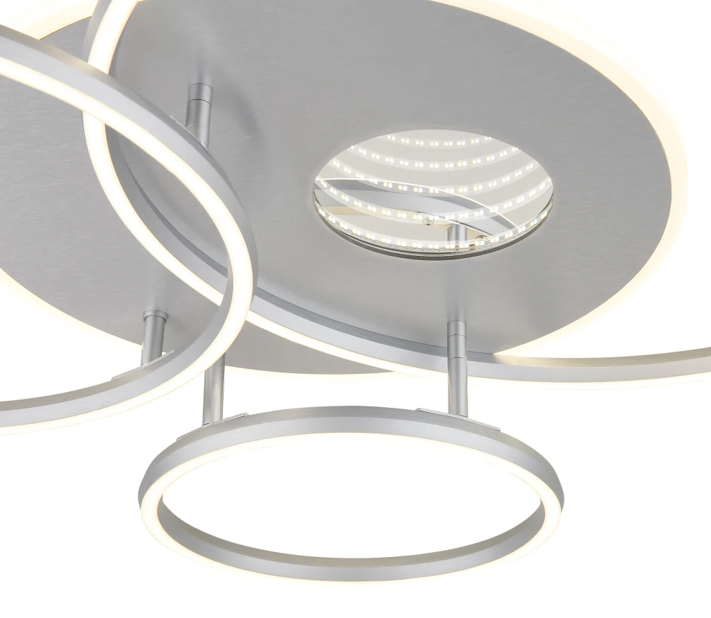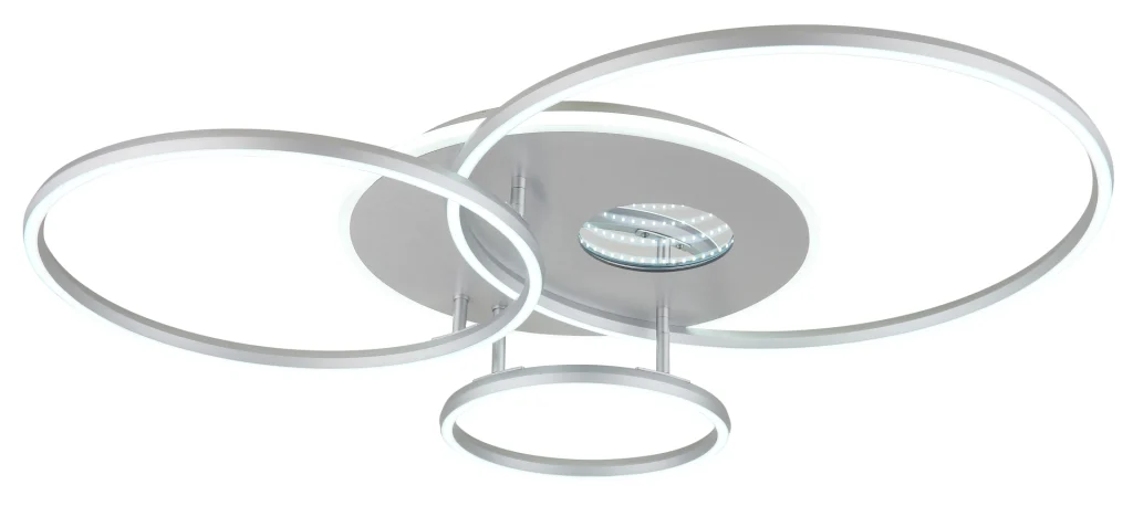 Plafonska lampa INVERTINA kombinuje moderan dizajn sa inovativnom tehnologijom osvetljenja i dodaje stilske akcente svakoj prostoriji. Njeno pravougaono telo napravljeno od brušenog, mat srebrnog aluminijuma naglašava čiste linije, dok četiri pomerana prstena stvaraju uzbudljiv, geometrijski izgled. Abažur napravljen od opal plastike i ogledalnog, sjajnog akrila stvara upečatljiv 3D efekat koji impresivno ističe svetlost. Sa svetlosnim izlazom od 2400 lumena, INVERTINA nudi snažnu, ali prijatnu osvetljenost koja se može individualno kontrolisati pomoću daljinskog upravljača – uključujući funkciju zatamnjivanja, podesivu boju svetlosti (CCT od 2700 K do 6500 K), noćno svetlo i podešavanja boja koja se mogu zaključati. Integrisana funkcija memorije trajno čuva vaša željena podešavanja. Savršena za dnevne i trpezarijske boravke, hodnike ili radne prostore, ova lampa nudi ne samo funkcionalnost već i ekspresivan dizajn. Uključuje LED diodu za energetski efikasno i dugotrajno osvetljenje.