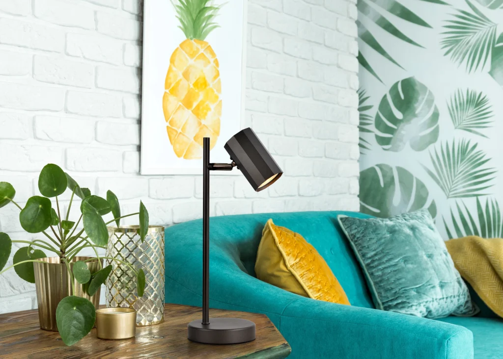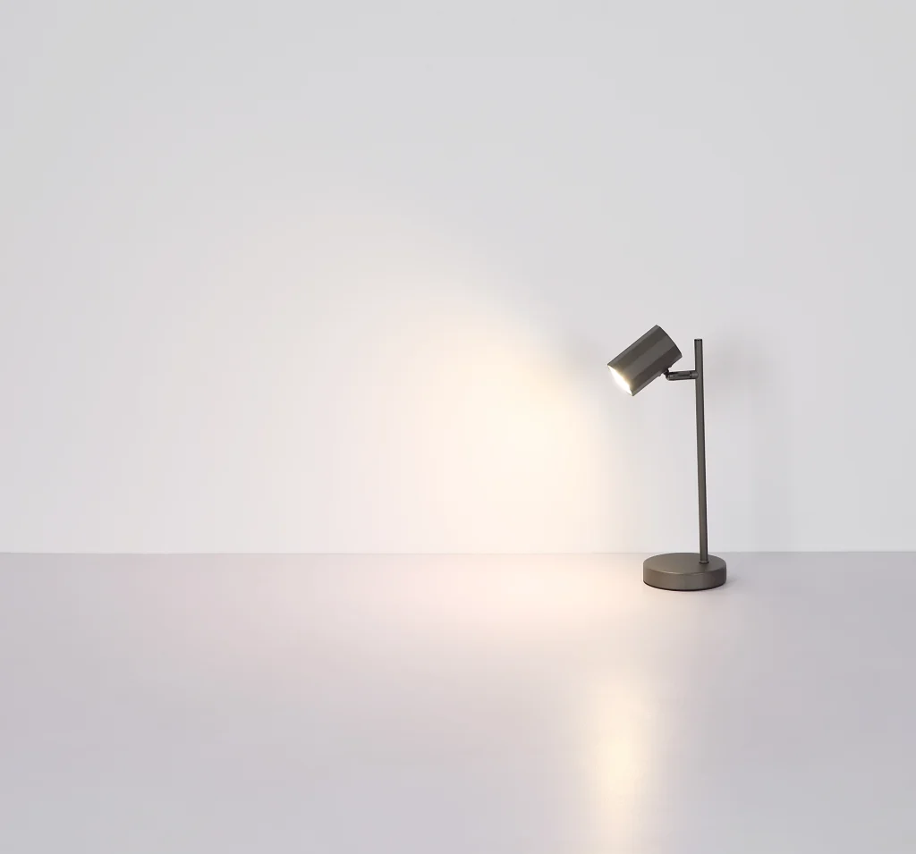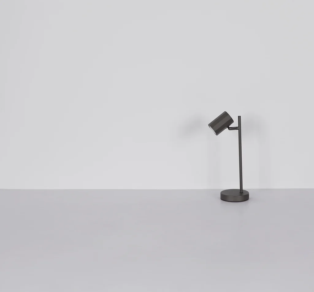 Stona lampa JAMES impresionira svojim tehničkim dizajnom i elegantnim izgledom. Jednocevna ravna lampa, koja stoji na okruglom postolju, nosi cilindrični reflektor koji pruža ciljano osvetljenje. Telo lampe je napravljeno od mat crnog metala, dok je abažur od mat crnog aluminijuma. Sa dužinom od 165 mm i širinom od 120 mm, stona lampa se savršeno uklapa na bilo koji sto ili bočni sto. Prekidač na kablu omogućava lako rukovanje i obezbeđuje prijatno iskustvo osvetljenja. Stona lampa JAMES kombinuje funkcionalnost sa stilom i time postavlja diskretan akcenat u svakoj prostoriji.