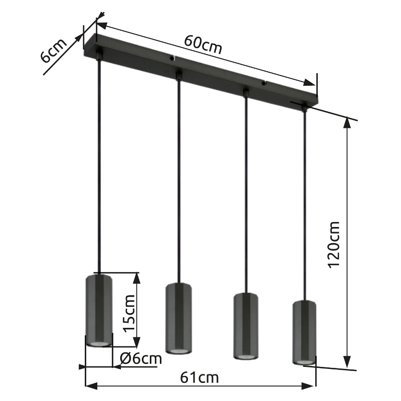 Otkrijte modernu VISEĆU LAMPU METAL SIVE boje i obasjajte svoj dom svetlim i stilskim svetlom. Ova izdužena viseća lampa ima ravnu šinu i opremljena je sa četiri cilindrična reflektora koji kombinuju tehnički dizajn sa savremenom elegancijom. Telo od mat sivog metala daje lampi plemenit dodir, dok cilindrični aluminijumski abažuri u mat sivoj boji obezbeđuju ravnomernu raspodelu svetlosti. Sa četiri snažne GU10 LED sijalice, ova viseća lampa pruža svetlo i efikasno svetlo za svaku prostoriju. Sa dužinom od 600 mm i širinom od 60 mm, predstavlja svestrano rešenje za širok spektar okruženja. Bilo da je iznad trpezarijskog stola, u dnevnoj sobi ili u hodniku – VISEĆA LAMPA METAL SIVE boje postavlja elegantne akcente svuda. Doživite savršenu kombinaciju tehničkog dizajna i funkcionalnosti sa našom VISEĆOM LAMPOM METAL SIVE boje.