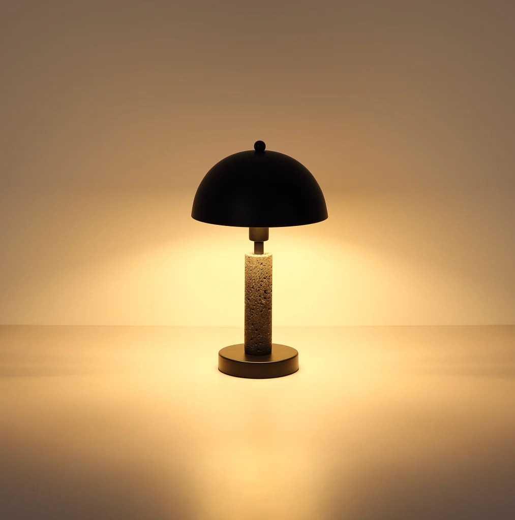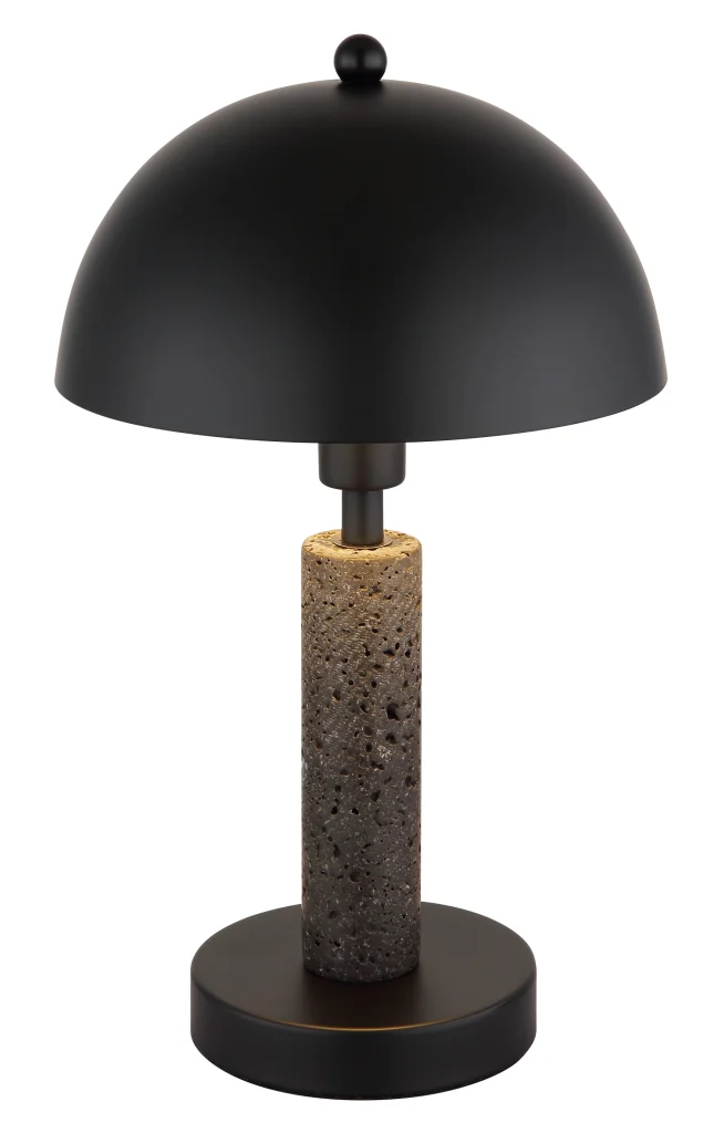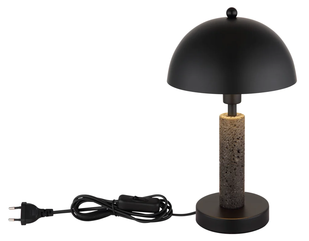 Stona lampa JANIE impresionira svojim okruglim dizajnom u obliku pečurke, kombinujući moderan stil sa klasičnim elementima. Telo je napravljeno od mat crnog metala, naglašeno crnim travertinom koji lampi daje plemenit i upečatljiv izgled. Okrugli abažur, takođe od mat crnog metala, harmonično dopunjuje celokupni izgled i dodaje stilski dodir. Sa prečnikom od 200 mm, lampa je kompaktna, a opet pravi izvor pažnje na svakom stolu ili noćnom stočiću. Praktično se upravlja pomoću prekidača na kablu. Snaga svetlosti je navedena bez E14 sijalice, što vam omogućava da izaberete izvor svetlosti prema vašim željama. JANIE je savršen spoj savremenog dizajna i praktične funkcionalnosti – idealan za moderan dom ili kancelariju.