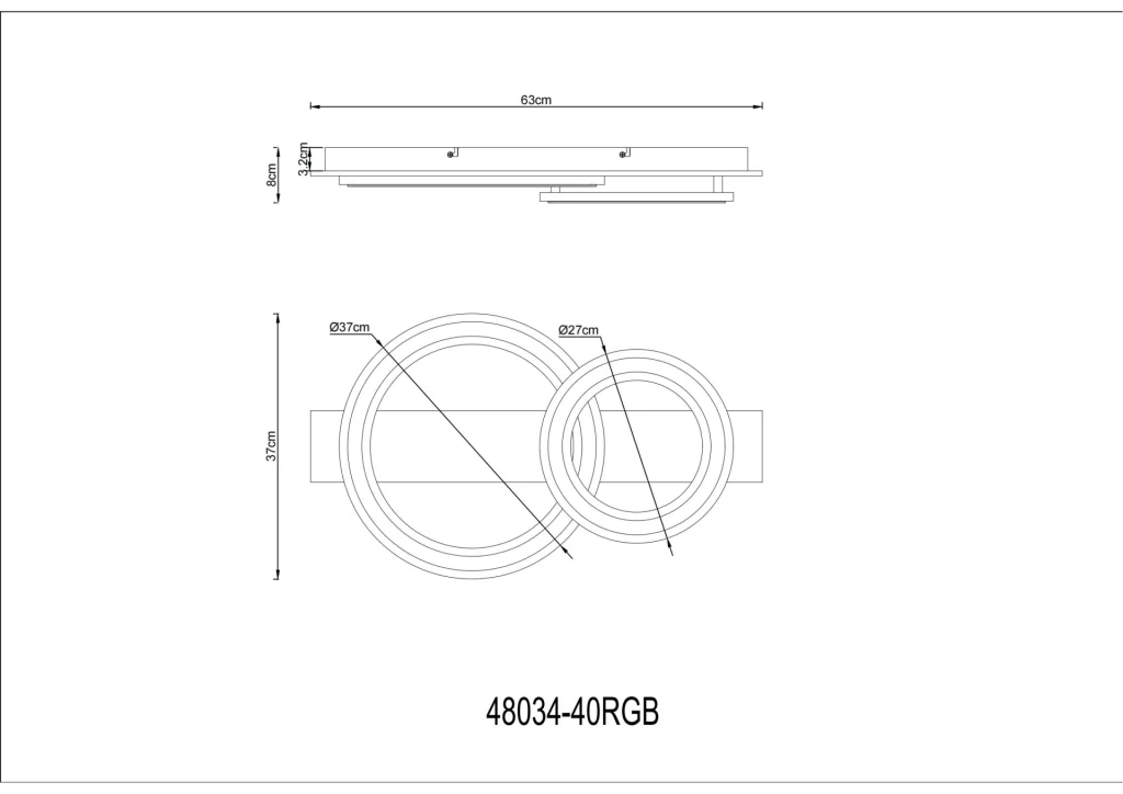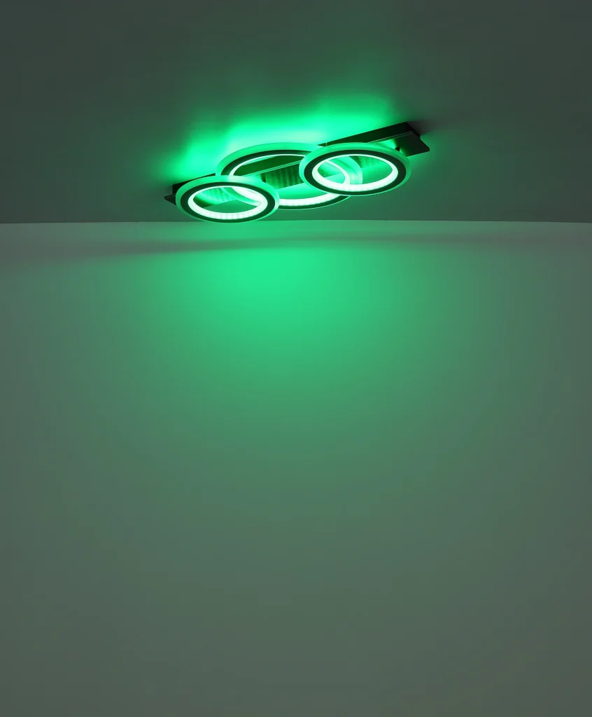 Pravougaona plafonska lampa JAYDEN kombinuje moderan dizajn sa inovativnim funkcijama. Telo napravljeno od crnog, mat metala i brušene sive plastike obezbeđuje elegantan i savremen izgled. Abažur napravljen od svetlo sivog metala i opal akrila nudi ravnomernu raspodelu svetlosti i stvara prijatnu atmosferu. Sa dužinom od 730 mm i širinom od 350 mm, lampa je idealna za veće prostorije. Zahvaljujući uključenom daljinskom upravljaču, svetlo se može prigušiti i nudi razne opcije podešavanja. Funkcija promene RGB boje vam omogućava da birate između različitih boja i uživate u efektu duge. Pored toga, RGB boja se može fiksirati kako bi se stvorila individualna atmosfera osvetljenja. Sa CCT od 2700K do 6500K, možete podesiti temperaturu boje po želji. Svetlo je takođe opremljeno praktičnom funkcijom memorije i dolazi sa LED diodom.