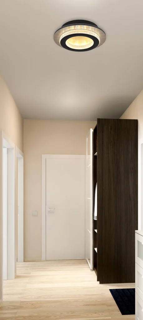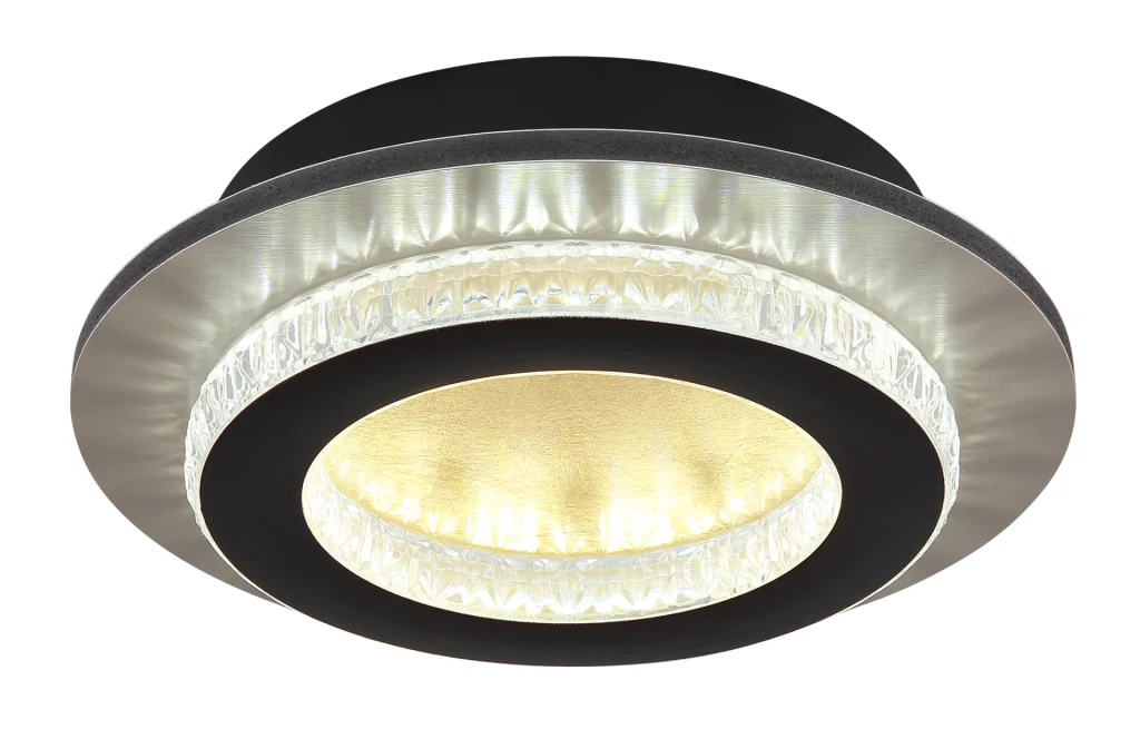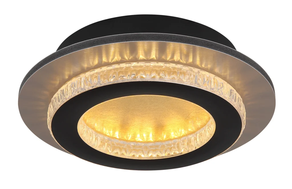 Plafonska lampa Jayden sa kristalnim prstenom kombinuje elegantan dizajn sa modernom tehnologijom. Telo napravljeno od mat crnog metala i plastike zlatne boje daje lampi elegantan, savremen izgled koji se savršeno integriše u različite stilove nameštaja. Abažur napravljen od providnih plastičnih kristala i mat crne plastike pruža ravnomerno i stilsko osvetljenje. Sa prečnikom od 200 mm, lampa je idealna za manje prostorije, hodnike ili kao akcentno osvetljenje. Plafonska lampa Džejden se može prigušiti i lako se kontroliše pomoću daljinskog upravljača. Pored toga, možete podesiti temperaturu boje po svojoj želji u opsegu od 2700K do 6500K, stvarajući idealnu atmosferu. Funkcija memorije čuva vaše željeno podešavanje. Idealna za moderne životne prostore gde su ispunjeni i funkcionalni i estetski zahtevi.