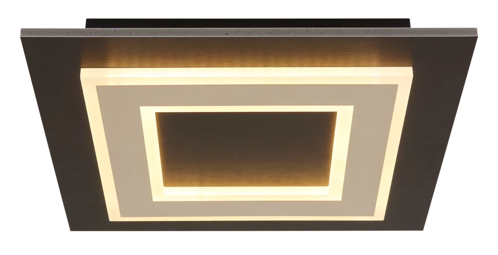 Kvadratna plafonska lampa JAYDEN je savršen izbor za moderan i stilski život. Mat crno metalno kućište daje lampi elegantan i bezvremenski izgled. Abažur je napravljen od tamnosmeđeg, brušenog MDF-a (vlaknaste ploče srednje gustine) i šampanjca boje, takođe brušenog metala, u kombinaciji sa opalnim akrilom. Ova kombinacija materijala stvara toplu i privlačnu atmosferu. Sa svetlosnim izlazom od 680 lumena i temperaturom boje od 3000 K, plafonska lampa JAYDEN pruža prijatno i ravnomerno osvetljenje, idealno za dnevnu sobu, spavaću sobu ili hodnik. Njen kvadratni oblik se harmonično uklapa u različite stilove opremanja i postavlja stilske akcente. Bilo da je glavni izvor svetlosti ili dekorativni element, plafonska lampa JAYDEN uverava svojim visokokvalitetnim dizajnom i funkcionalnim osvetljenjem.