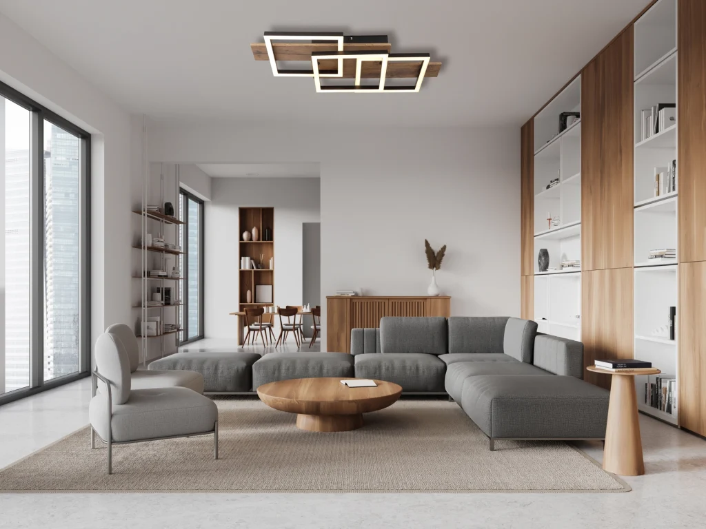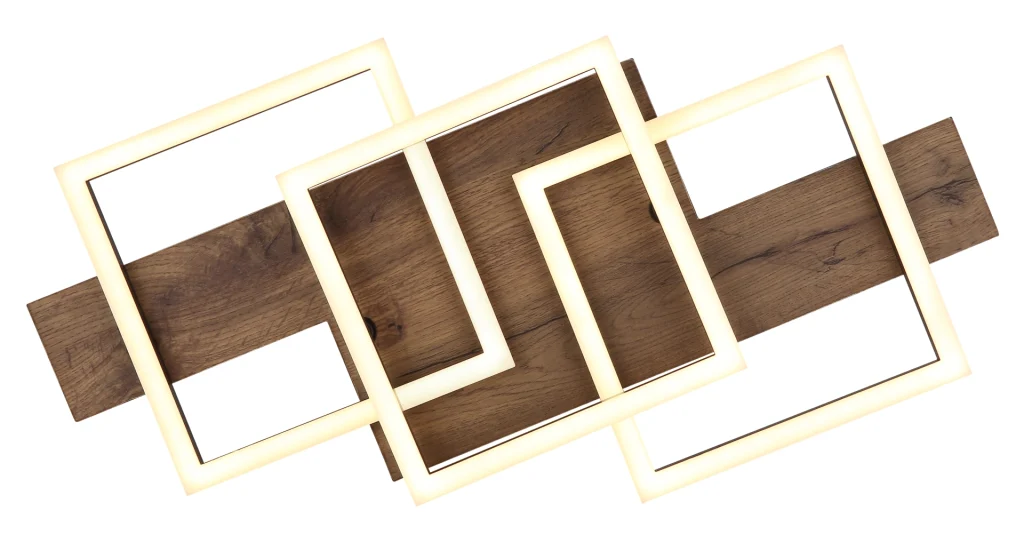 Plafonska lampa JEFFRY je prava atrakcija sa svojim pričvršćenim i pomeranim kvadratima. Pravougaono telo od mat crnog lakiranog metala i efekta MDF drveta unosi moderan dodir u vaš dom. Sa dužinom od 580 mm i širinom od 330 mm, idealna je za veće prostorije. Abažur od plastike u mat crnoj i opal boji obezbeđuje ravnomernu raspodelu svetlosti. Sa impresivnim svetlosnim izlazom od 1300 lumena na 3000 K, JEFFRY stvara prijatnu atmosferu, savršenu za trpezarije ili dnevne boravke.