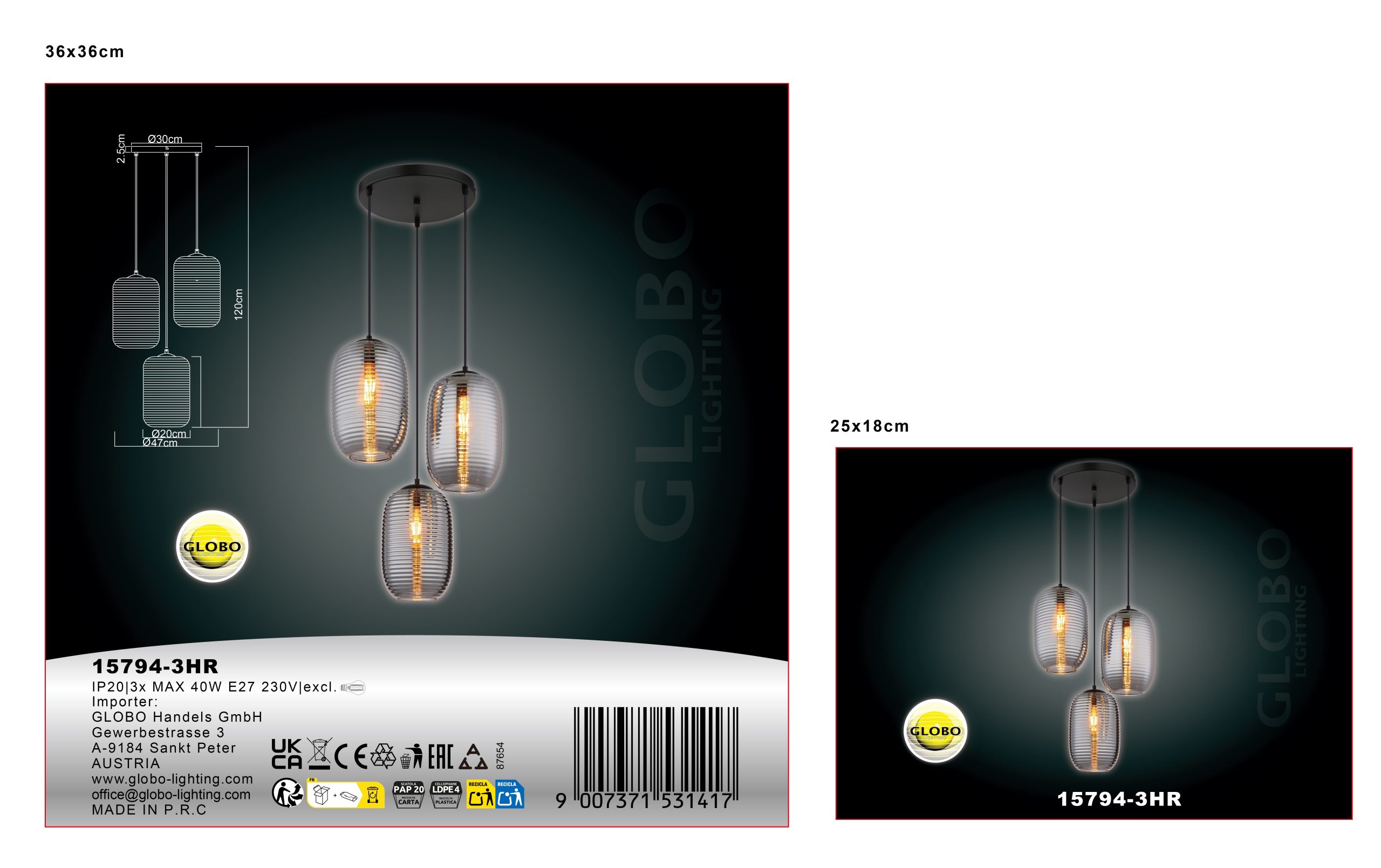 Unesite stilsku atmosferu u svoj dom uz viseću lampu JEFREY METAL BLACK MATT. Ova elegantna viseća lampa impresionira sa tri okrugla, lukovicasta sočiva u dimljenom dizajnu, kojima dodatni šarm daje nežna struktura žlebova. Telo napravljeno od visokokvalitetnog mat crnog metala pruža modernu i bezvremensku estetiku koja će izgledati sjajno u svakoj prostoriji. Sa prečnikom od 400 mm, VISEĆA LAMPA je savršena za iznad trpezarijskih stolova, u dnevnim sobama ili kuhinjama. Lampa je opremljena sa tri E27 grla, što vam daje mogućnost da izaberete sijalice prema svom individualnom ukusu (sijalice nisu uključene). Viseća lampa JEFREY kombinuje funkcionalnost i stil i biće atrakcija u vašem životnom prostoru. Doživite svetlost u njenom najlepšem obliku i stvorite privlačnu atmosferu uz ovu izvanrednu viseću lampu!