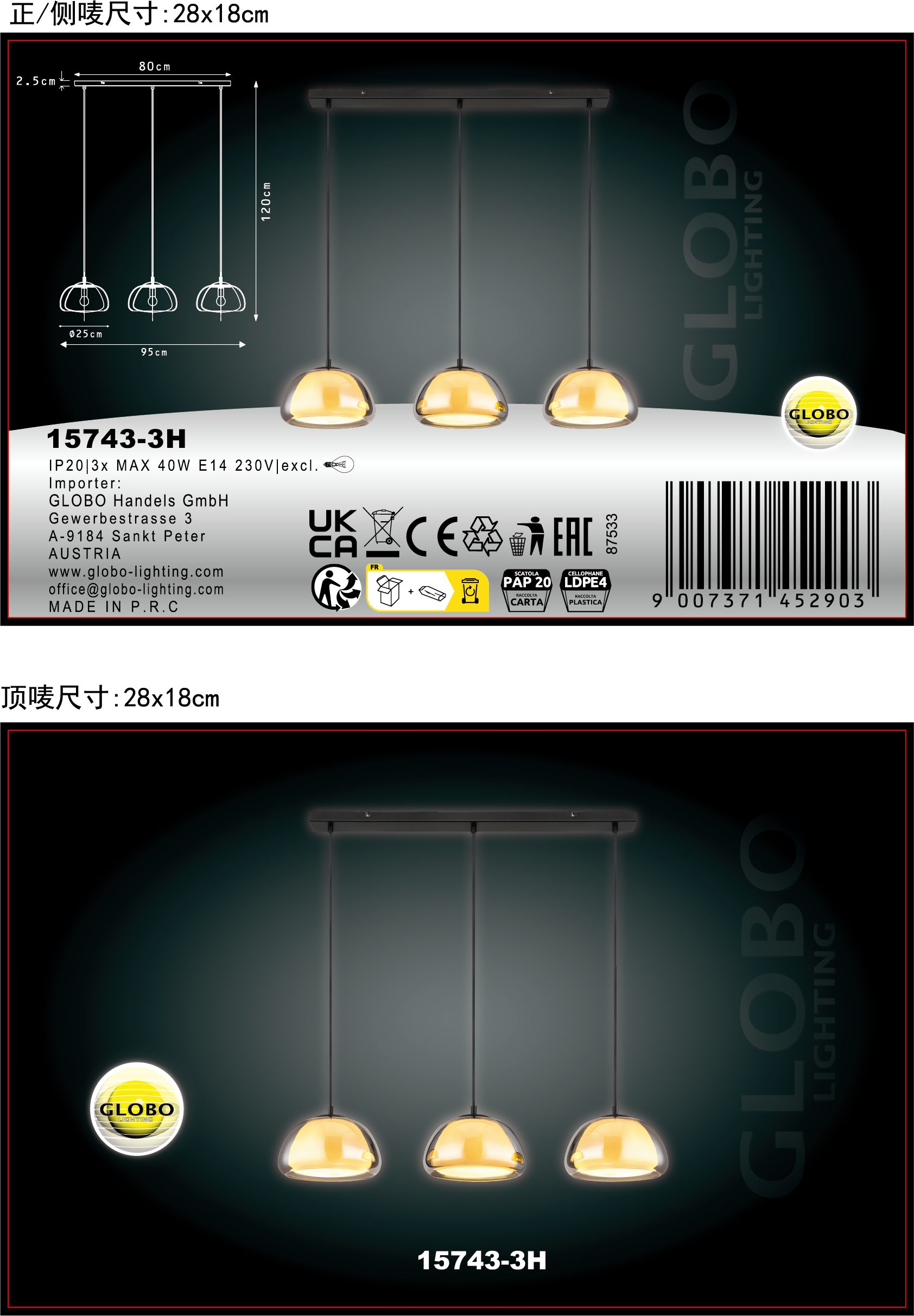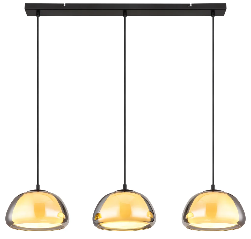 Elegantna izdužena viseća lampa sa ravnim metalnim kućištem u mat crnoj boji i tri viseća stakla sa unutrašnjim staklom je savršen dodatak modernim i stilskim enterijerima. Sa dužinom od 950 mm i širinom od 250 mm, ova viseća lampa nudi dovoljno prostora za tri E14 grla, svako snage 40 W, kako bi se stvorilo meko i udobno osvetljenje. Telo napravljeno od mat crnog metala daje lampi plemenit izgled, dok stakla boje dima sa opalnim unutrašnjim staklom pružaju prijatno svetlo. Idealna za upotrebu iznad malog trpezarijskog stola, u spavaćoj sobi ili u hodniku, ova viseća lampa postavlja stilske akcente svojim bezvremenskim dizajnom. Unesite toplu atmosferu i harmonično osvetljenje u svoj dom pomoću ove izdužene viseća lampe napravljene od mat crnog metala i opalnih dimljenih stakala.