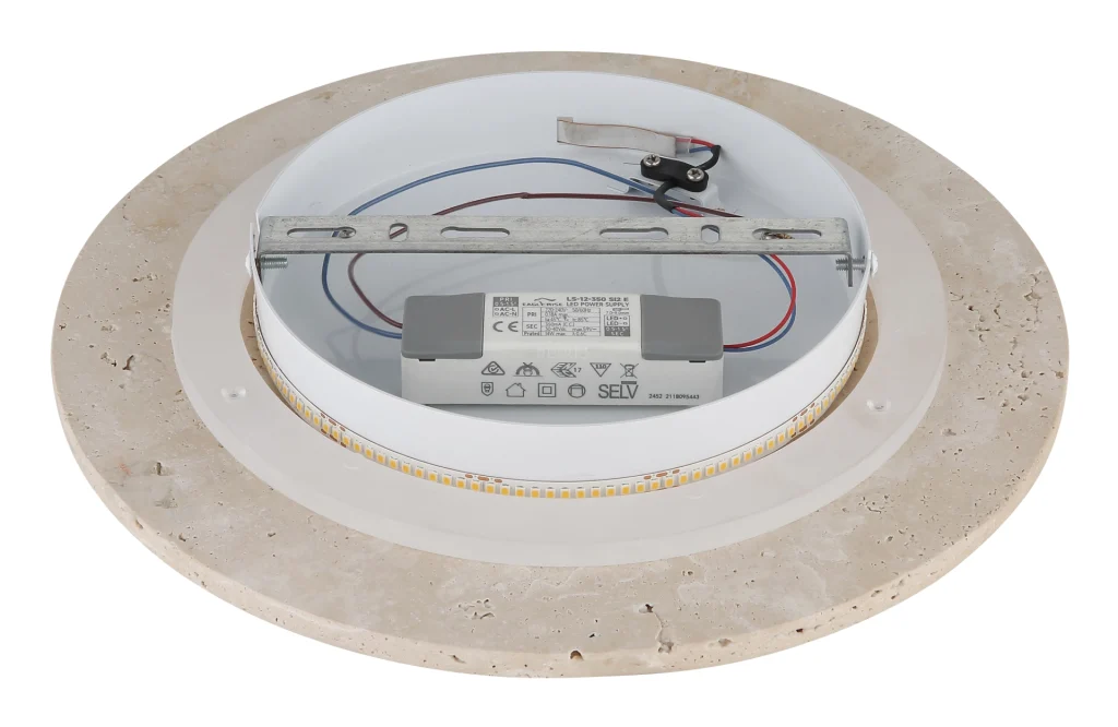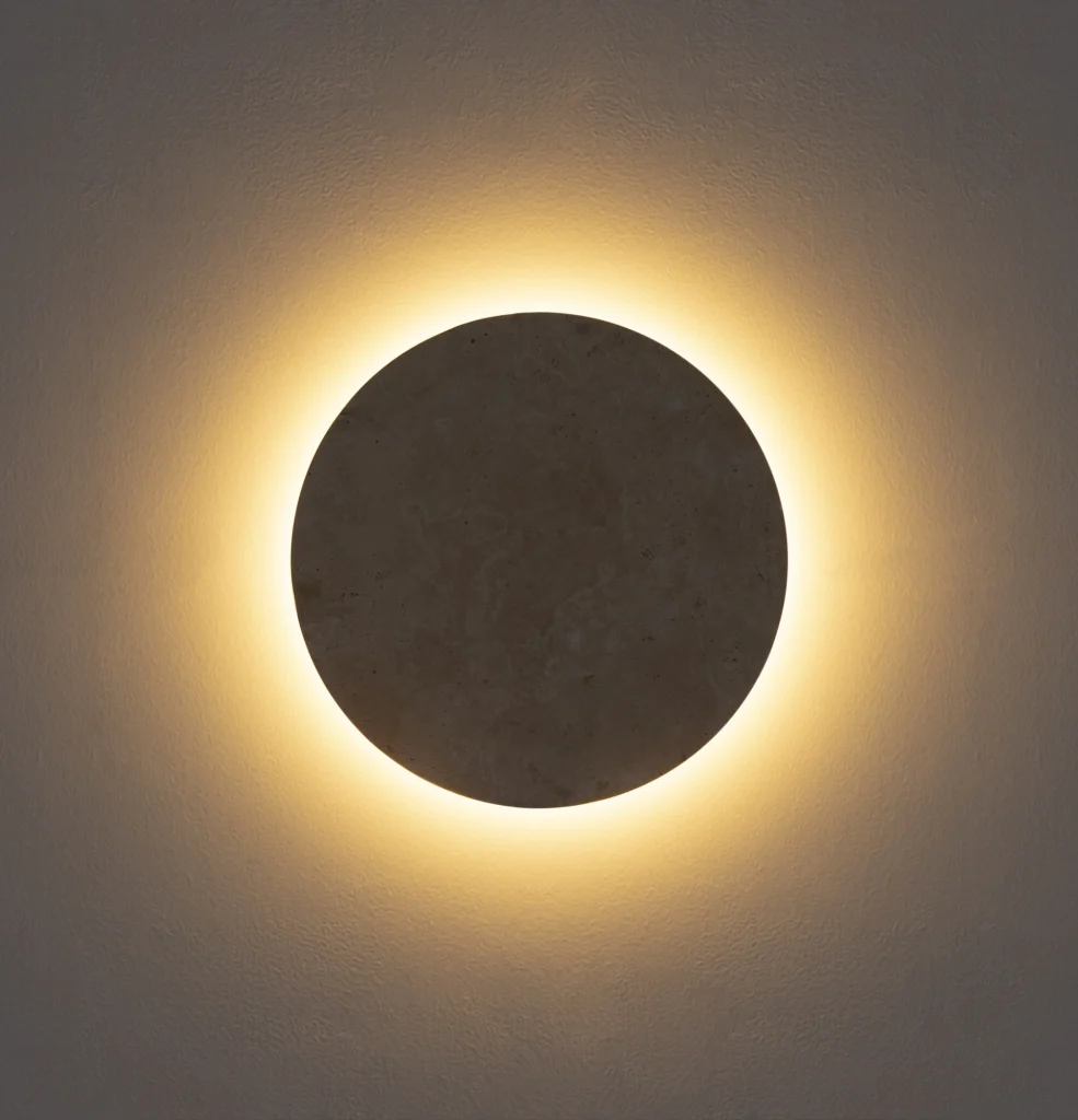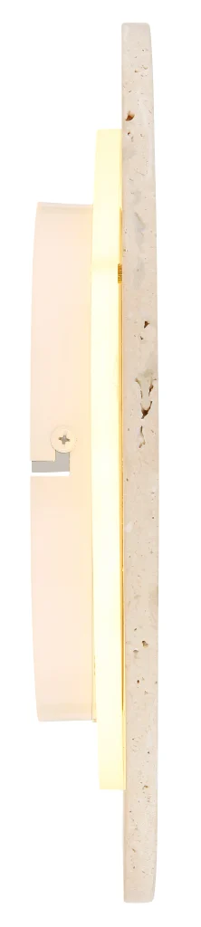 Okrugla zidna lampa JILLIAN u vintage stilu impresionira svojim minimalističkim dizajnom ravnog diska i toplim, prirodnim izgledom. Mat belo metalno kućište stvara elegantan kontrast sa abažurom napravljenim od pravog travertina, dajući svetlu visokokvalitetan, bezvremenski izgled. Integrisana LED tehnologija pruža svetlosni fluks od 1142 lumena sa prijatnom toplo belom temperaturom boje od 3000 K, obezbeđujući ravnomerno osvetljenje bez odsjaja. Sa prečnikom od 300 mm i tankom projekcijom od samo 38 mm, JILLIAN se diskretno uklapa u širok spektar koncepata enterijera. Bilo da je u dnevnoj sobi, hodniku, spavaćoj sobi ili kao stilsko akcentno osvetljenje, ova zidna lampa prelepo ističe prirodne materijale i meko svetlo.