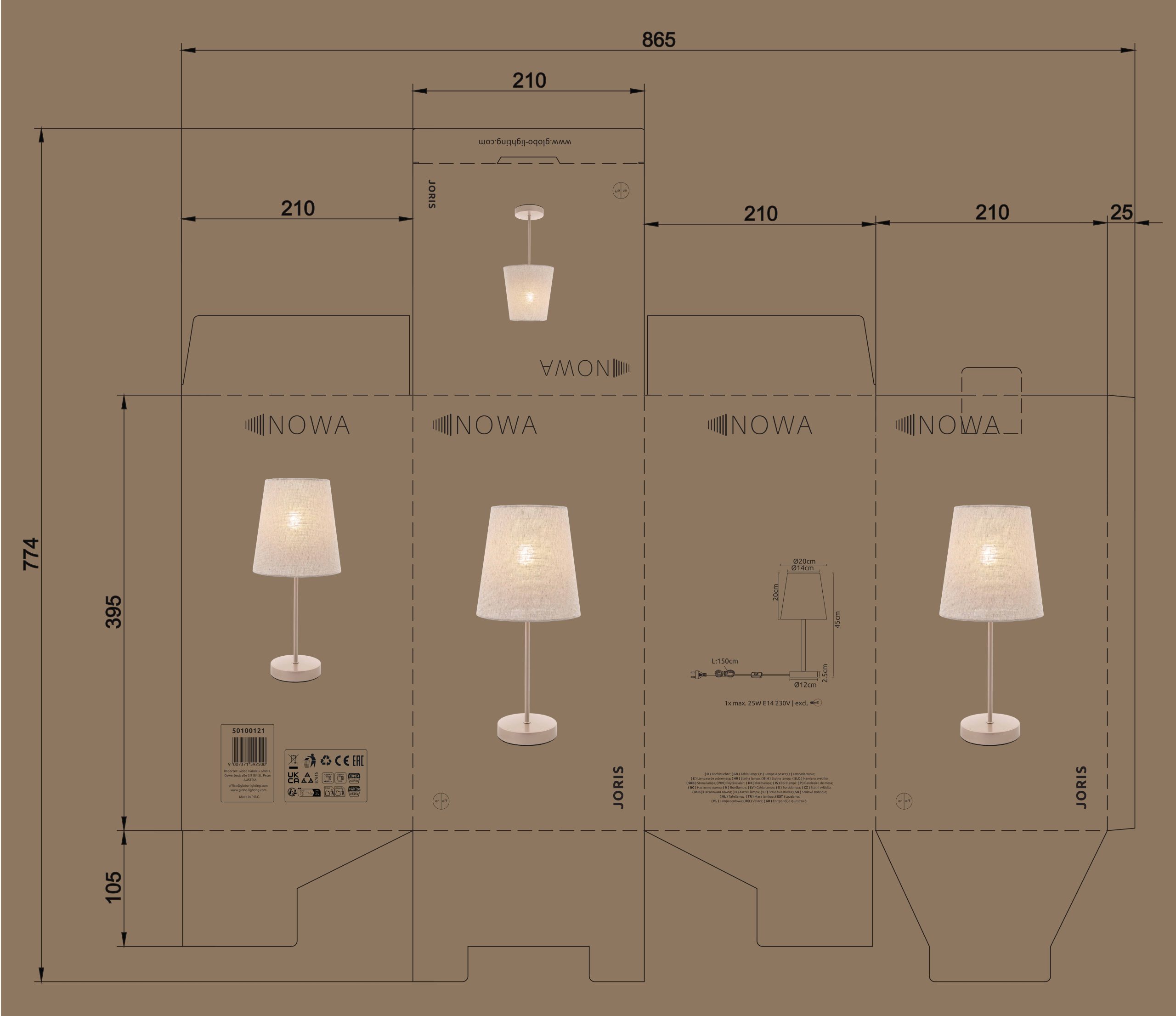 Stona lampa JORIS kombinuje klasičnu eleganciju sa bezvremenskim dizajnom i postaje stilski akcenat u svakom životnom prostoru. Tanko, ravno stablo napravljeno od metala boje šampanjca daje lampi prefinjen i topao izgled koji se harmonično uklapa u širok spektar stilova enterijera. Konusni bež abažur od tkanine pruža meku, bez odsjaja raspodelu svetlosti i stvara prijatnu, ugodnu atmosferu na stolu, komodi ili noćnom stočiću. Sa prečnikom od 200 mm, lampa je kompaktna, ali dovoljno izražajna da postavi ciljane akcente osvetljenja. Praktični prekidač na kablu omogućava lako rukovanje. Zahvaljujući grlu E14, možete slobodno birati izvor svetlosti i podešavati osvetljenost i temperaturu boje prema vašim ličnim željama. Bilo da je to lampa za čitanje, ambijentalni akcenat ili dekorativni element, JORIS impresionira visokokvalitetnim materijalima, elegantnim dizajnom i fleksibilnom upotrebom.
