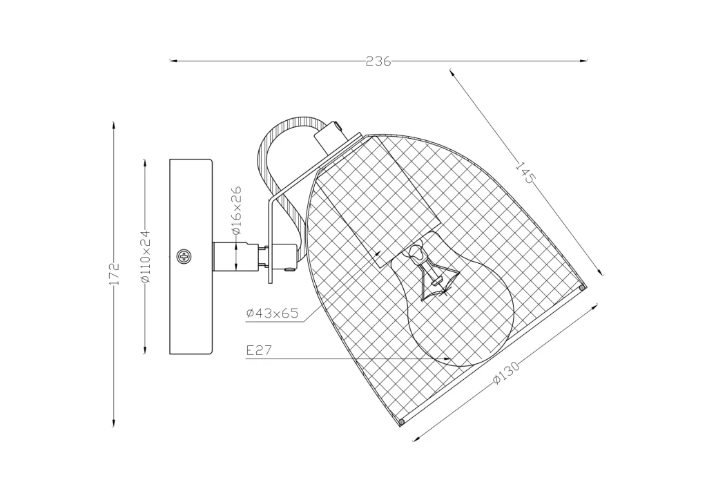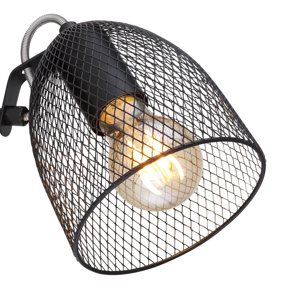 The wall lamp made of black metal comes from the Josina series. The lampshade made of metal mesh ensures special well-being in this interior lamp. This modern lamp has a diameter of 13cm and provides a pleasant and warm light. The typical E27 socket offers you the possibility to choose the bulb yourself. It is suitable for living/dining and bedrooms. Other models of this series complete your living and living space.