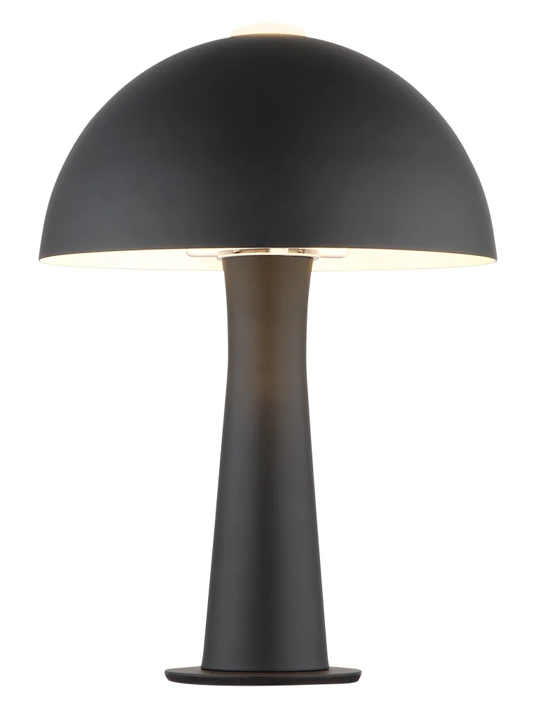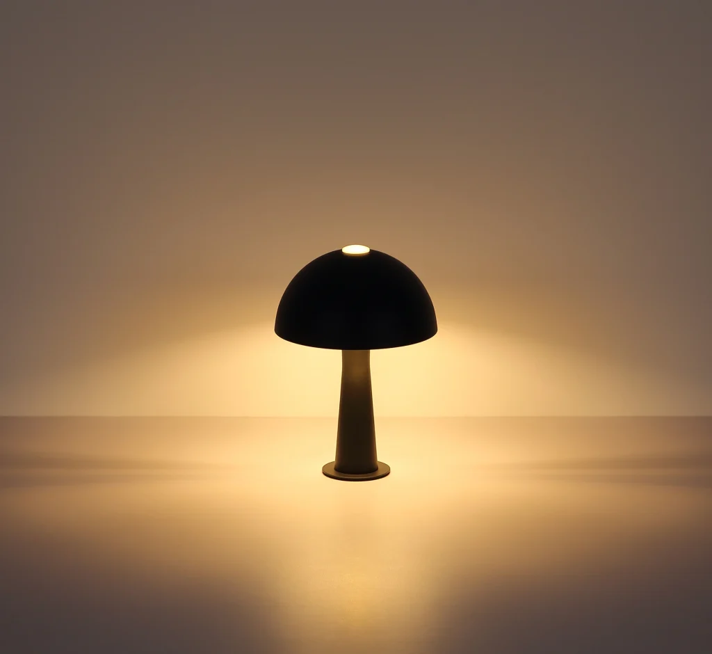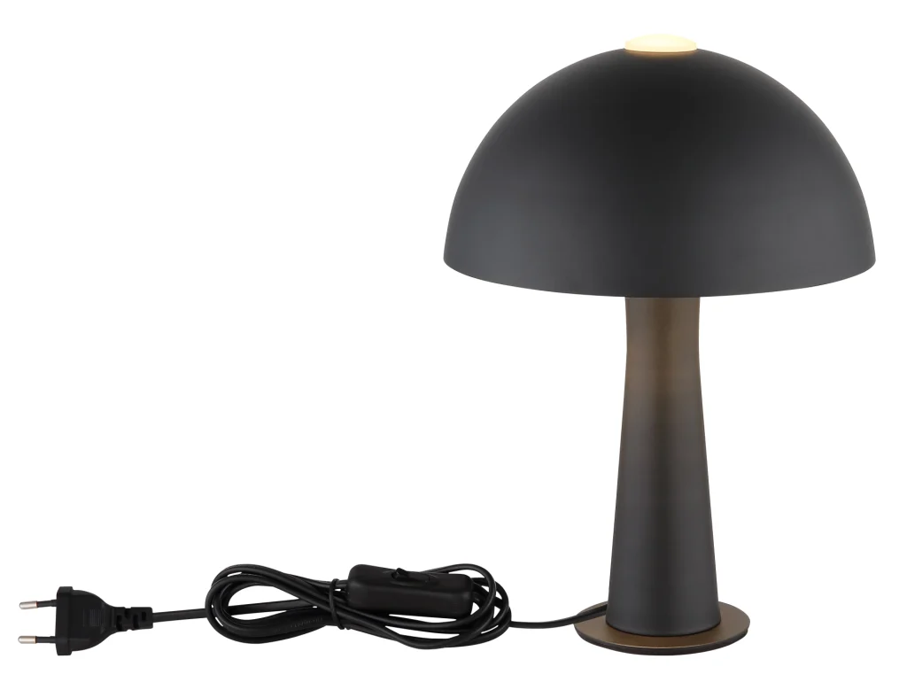 Stona lampa JULIA impresionira svojim kultnim oblikom pečurke i modernim, elegantnim izgledom. Okruglo telo od mat crnog metala harmonično se stapa sa odgovarajućim metalnim abažurom, dajući lampi posebno prefinjen i savremen izgled. Zahvaljujući svom minimalističkom dizajnu, JULIA se bez napora uklapa u moderne, industrijske ili skandinavske enterijere i dodaje stilske akcente noćnim stočićima, komodama, policama ili stolovima. Sa prečnikom od 200 mm, stona lampa deluje kompaktno, ali prisutno – idealna kao atmosfersko akcentno osvetljenje ili suptilni izvor svetlosti u dnevnoj sobi ili spavaćoj sobi. Praktični prekidač na kablu obezbeđuje praktičan rad. Zahvaljujući grlu E14, možete pojedinačno odabrati izvor svetlosti i podesiti osvetljenost i boju svetlosti prema vašim ličnim željama.