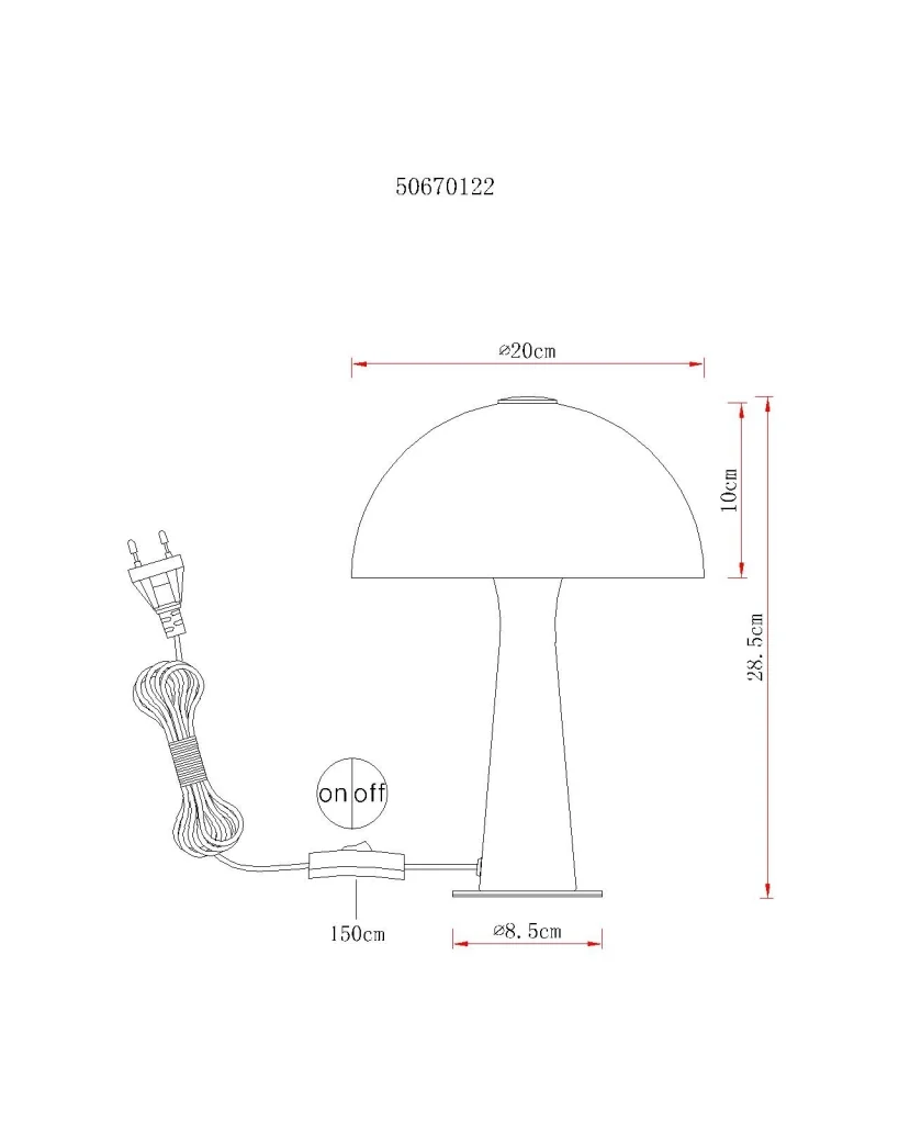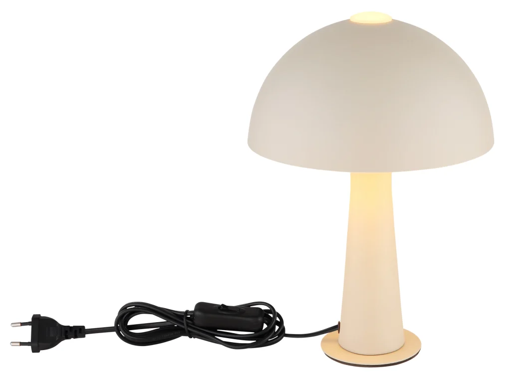 Stona lampa JULIA oduševljava svojim bezvremenskim oblikom pečurke i čistim, modernim izgledom. Okruglo telo boje peska od metala harmonično se stapa sa odgovarajućim metalnim abažurom, dajući lampi elegantan i smiren izgled. Zahvaljujući jednostavnom dizajnu, JULIA se bez napora uklapa u širok spektar stilova enterijera – od modernog i skandinavskog do minimalističkog. Sa prečnikom od 200 mm, stona lampa deluje kompaktno, ali prisutno i idealna je za noćne stočiće, komode, police ili stolove. Praktični prekidač na kablu omogućava praktično rukovanje i lako uključivanje i isključivanje. Zahvaljujući grlu E14, možete pojedinačno odabrati izvor svetlosti i podesiti osvetljenost i boju svetlosti prema vašim ličnim željama. Bilo da je u pitanju toplo ambijentalno svetlo za prijatne večeri ili suptilno akcentno osvetljenje u dnevnoj sobi, JULIA nudi fleksibilan dizajn osvetljenja sa stilskim karakterom.