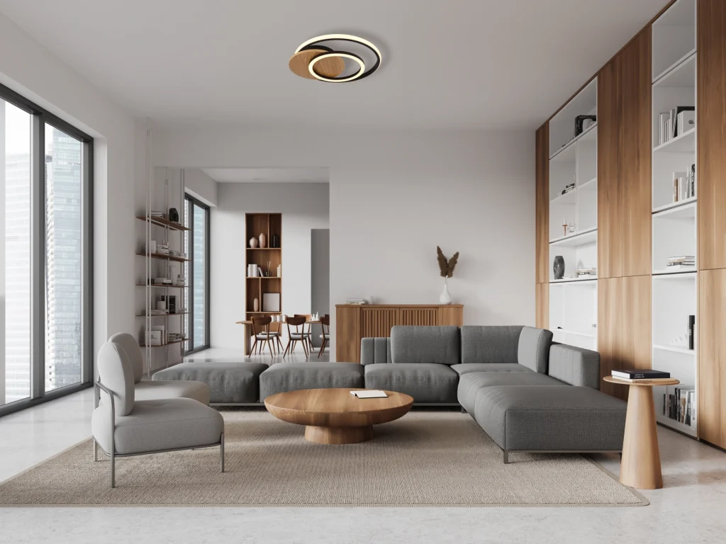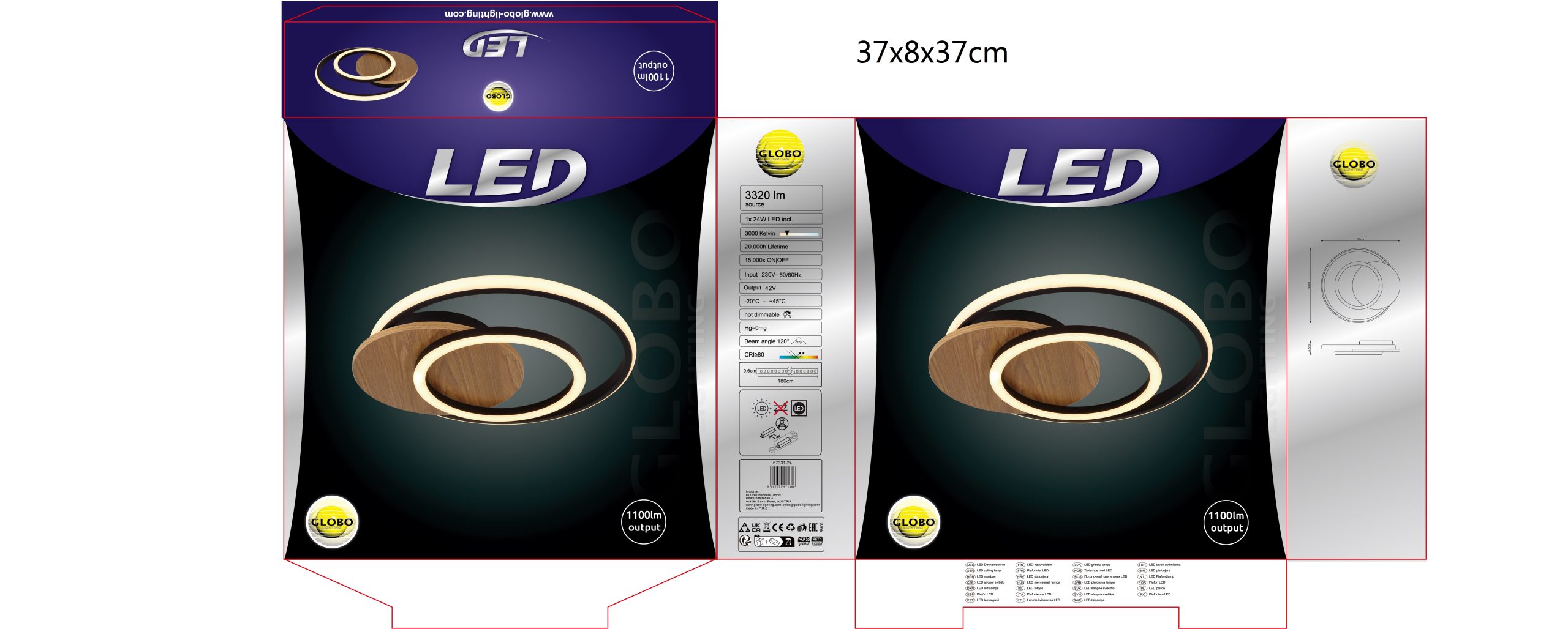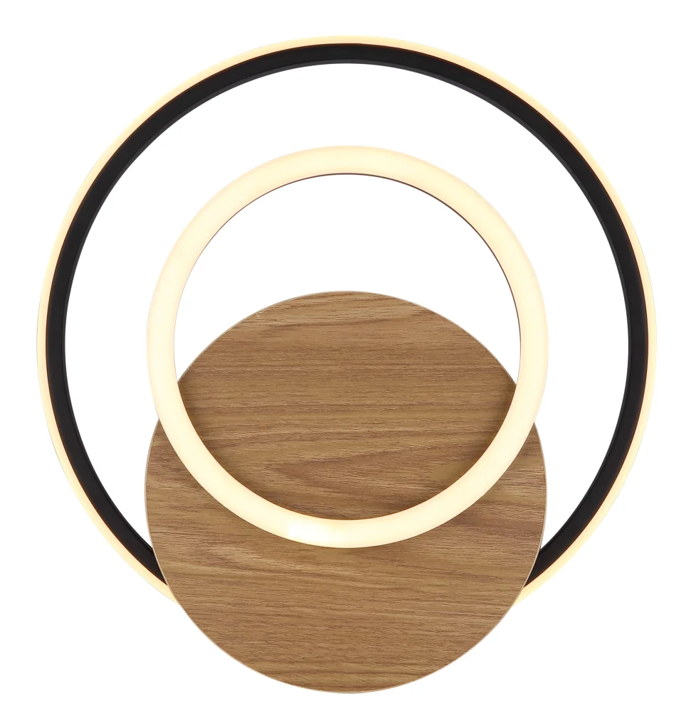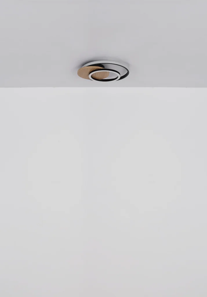 Otkrijte plafonsku lampu JULIO, inovativno rešenje za vašu sobu. Okrugli oblik ove lampe ukrašavaju tri prstena koji se harmonično stapaju sa oblikom abažura. Telo je napravljeno od MDF-a (vlaknaste ploče srednje gustine) sa drveno-optičkom površinom u tamnoj boji. Abažur je napravljen od plastike u crnom mat laku i obložen je opalnom akrilnom oblogom. Svetiljka nudi toplo belo osvetljenje sa temperaturom boje od 3000 K, što je idealno za uređenje dnevnih soba, spavaćih soba i kancelarija. Njene fleksibilne opcije instalacije i moderan dizajn čine ovu svetiljku idealnom za osvetljavanje prostorija gde je poželjan moderan i elegantan jednostavan izgled.