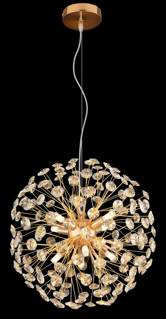 Otkrijte KATRINA zlatni metalni luster, izvrsnu kuglastu lampu koja očarava blistavim K9 kristalima. Ova tradicionalna lampa se ističe svojim elegantnim metalnim kućištem zlatne boje i providnim kristalnim abažurom koji stvara impresivnu igru svetlosti. Opremljen sa osam G9 LED sijalica, luster nudi topao sjaj sa temperaturom boje od 3000 K i svetlosnim snagama od 350 lumena. Ova lampa je idealna za dnevne sobe i trpezarije, gde pruža prijatno osvetljenje i stilski izgled. Sferni dizajn i visokokvalitetna izrada čine KATRINA luster vrhuncem u svakom enterijeru. Uživajte u savršenoj kombinaciji tradicionalnog dizajna i moderne LED tehnologije koja će okupati vaš dom privlačnim i glamuroznim svetlom, dodajući dašak luksuza.