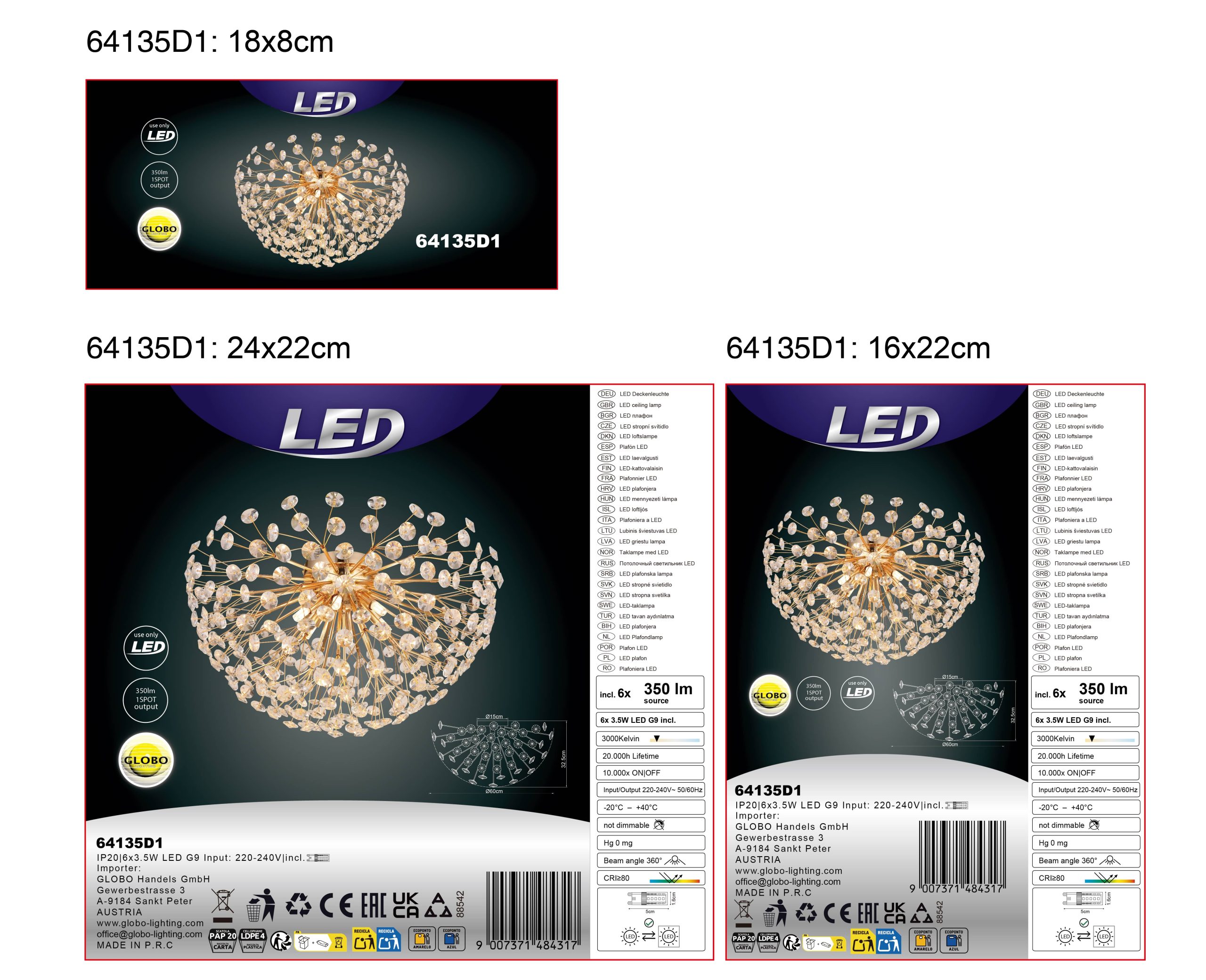 Doživite plafonsku lampu KATRINA metalne zlatne boje, stilsku polusferičnu lampu koja pleni svojim blistavim K9 kristalima. Ova tradicionalna lampa kombinuje eleganciju i funkcionalnost u savršenoj harmoniji. Metalno kućište zlatne boje i abažur od prozirnog K9 kristala stvaraju impresivnu igru svetlosti koja će svaku prostoriju osvetliti luksuznim sjajem. Opremljena sa šest G9 LED sijalica, KATRINA nudi topao sjaj sa temperaturom boje od 3000 K i svetlosnim snagama od 350 lumena. Polusferični dizajn i precizan raspored kristala daju svakoj prostoriji elegantnu atmosferu. Uživajte u kombinaciji tradicionalnog dizajna i moderne LED tehnologije koja će vaš dom obasjati privlačnim i glamuroznim svetlom.