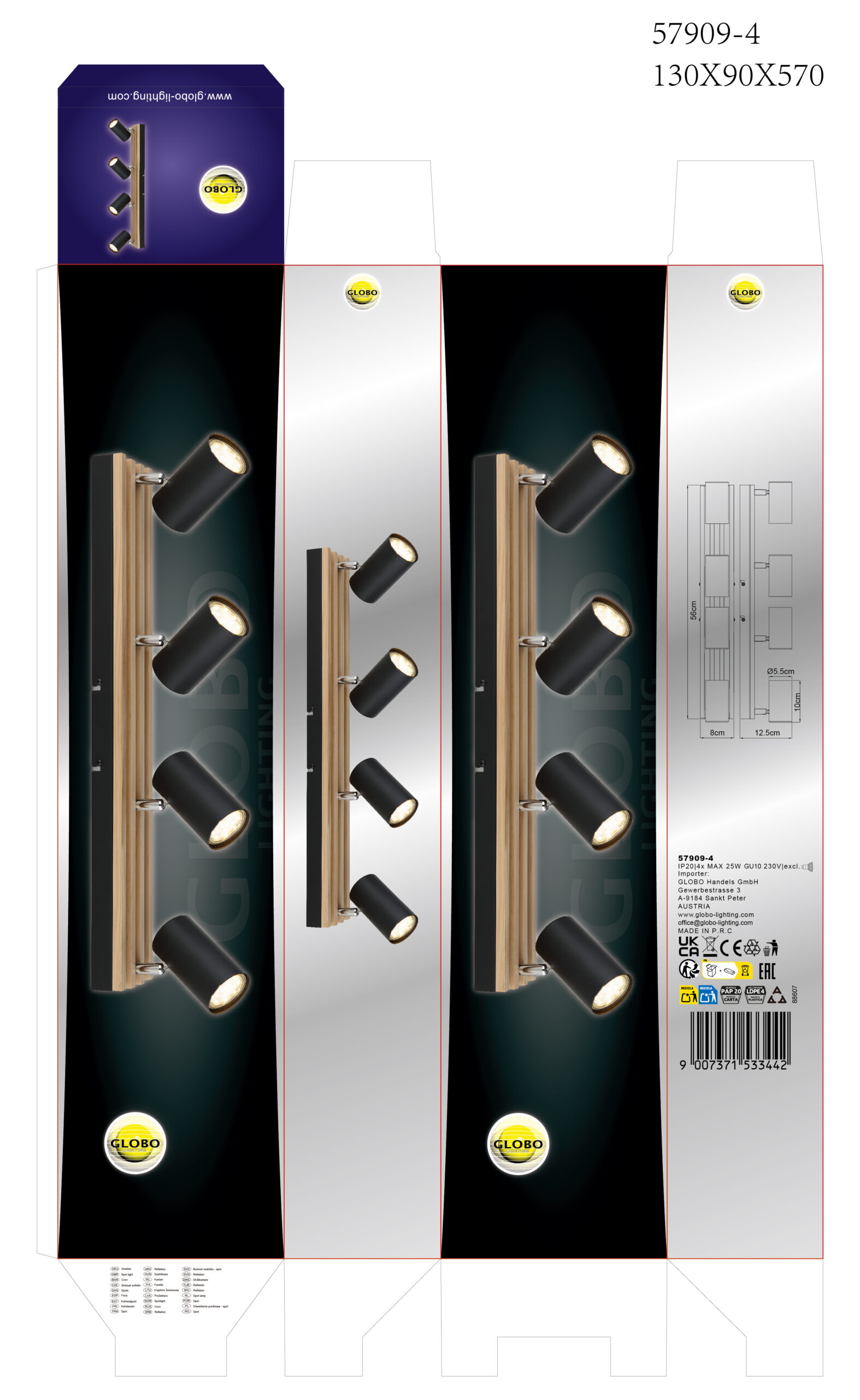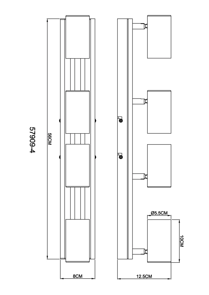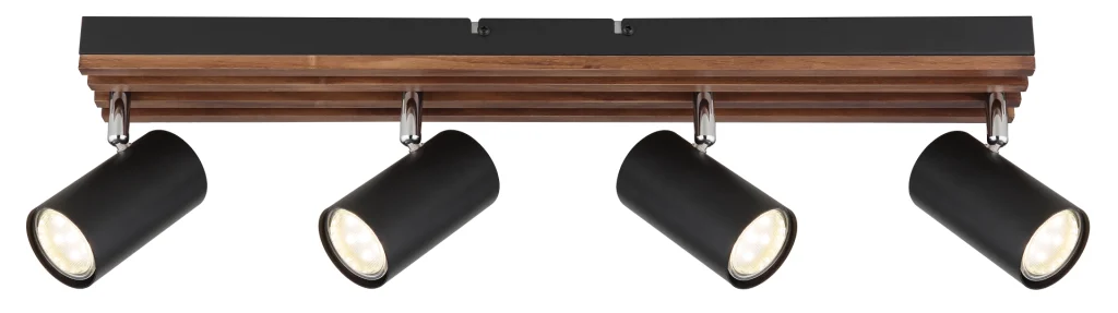 Zidna lampa KAYDEN kombinuje moderan dizajn sa prirodnim akcentima i nudi stilsko rešenje za osvetljenje za svaki dom. Pravougaona zidna tabla napravljena od mat crnog metala upotpunjena je elegantnom drvenom aplikacijom u tamnosmeđem drvetu, što obezbeđuje harmoničnu kombinaciju modernih i prirodnih elemenata. Cilindrični reflektori napravljeni od crnog metala su fleksibilno podesivi i omogućavaju precizno usmeravanje svetlosti, idealno za akcentno osvetljenje. Sa dužinom od 560 mm, širinom od 80 mm i visinom od 125 mm, lampa je idealna za različite zidne površine u vašoj dnevnoj sobi, hodniku ili radnom prostoru. Reflektor KAYDEN se isporučuje bez sijalice i opremljen je GU10 grlima tako da možete izabrati pravu sijalicu za svoje potrebe. Ova zidna lampa kombinuje funkcionalno osvetljenje sa elegantnim dizajnom i pravi je faktor u vašoj sobi.