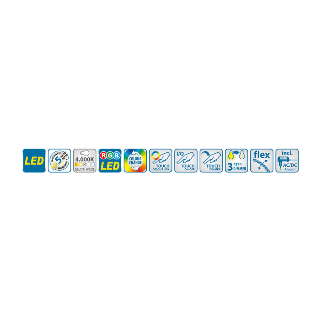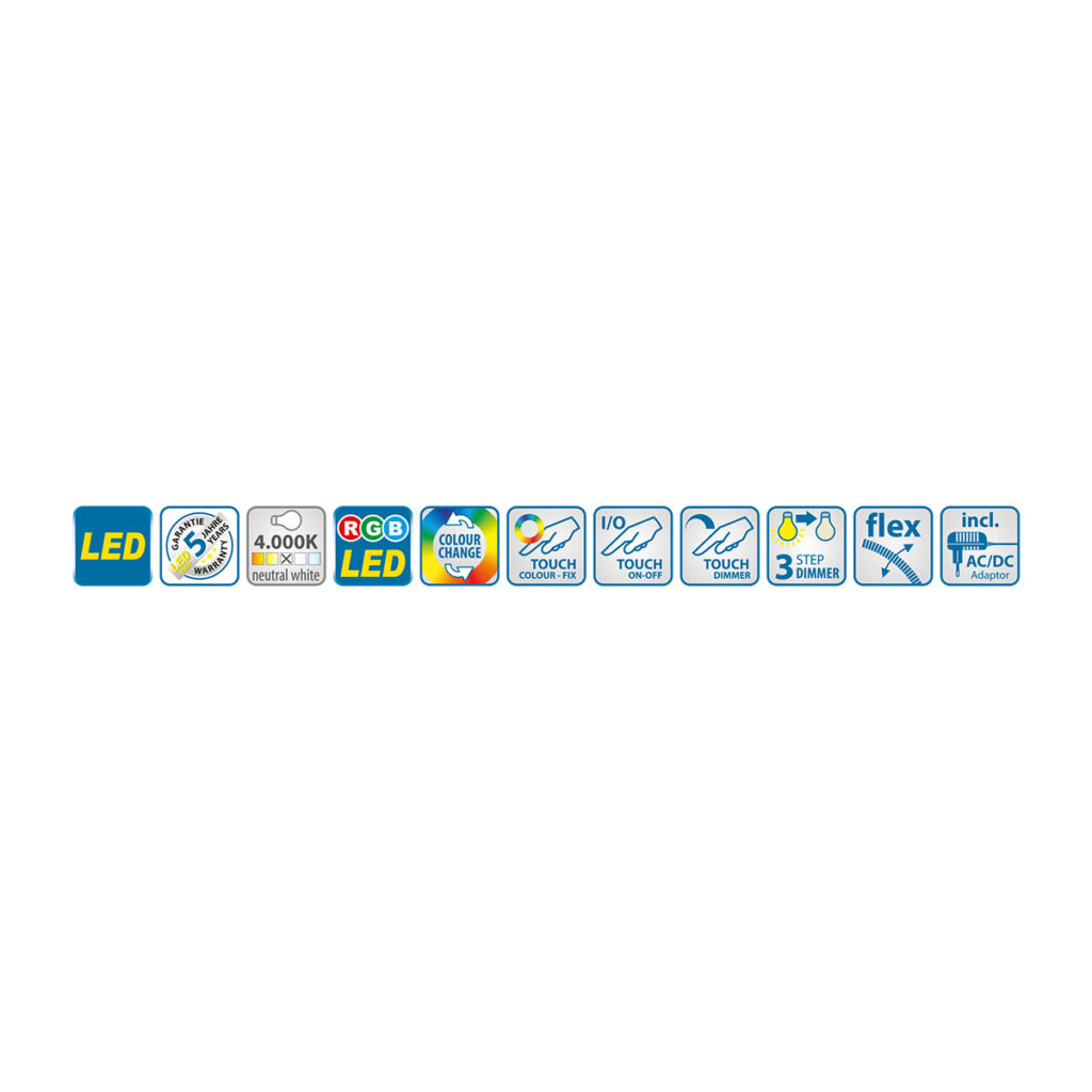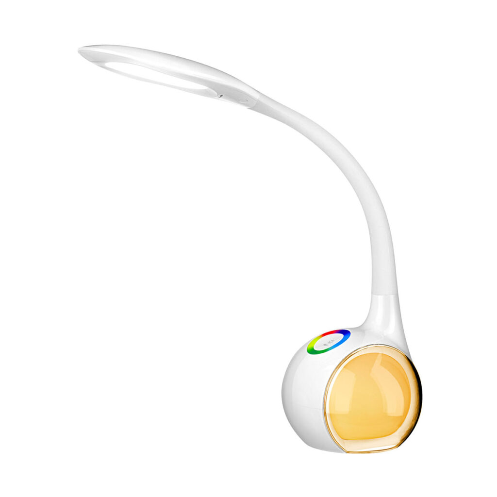 Stona lampa atraktivnog dizajna sa lako podesivim vratom. Na postolju se nalazi RGB svetlo i mogućnost lakog odabira tražene boje