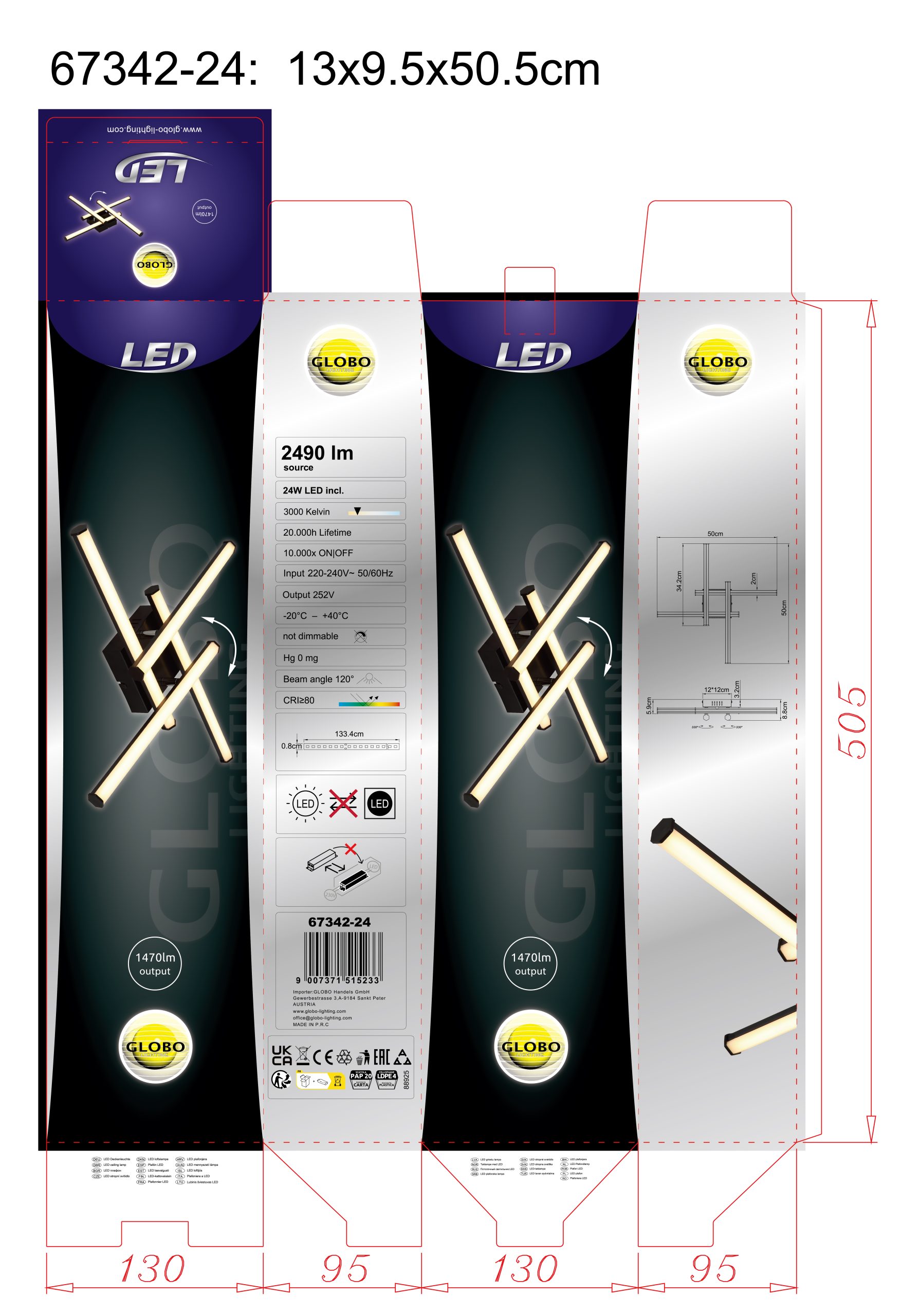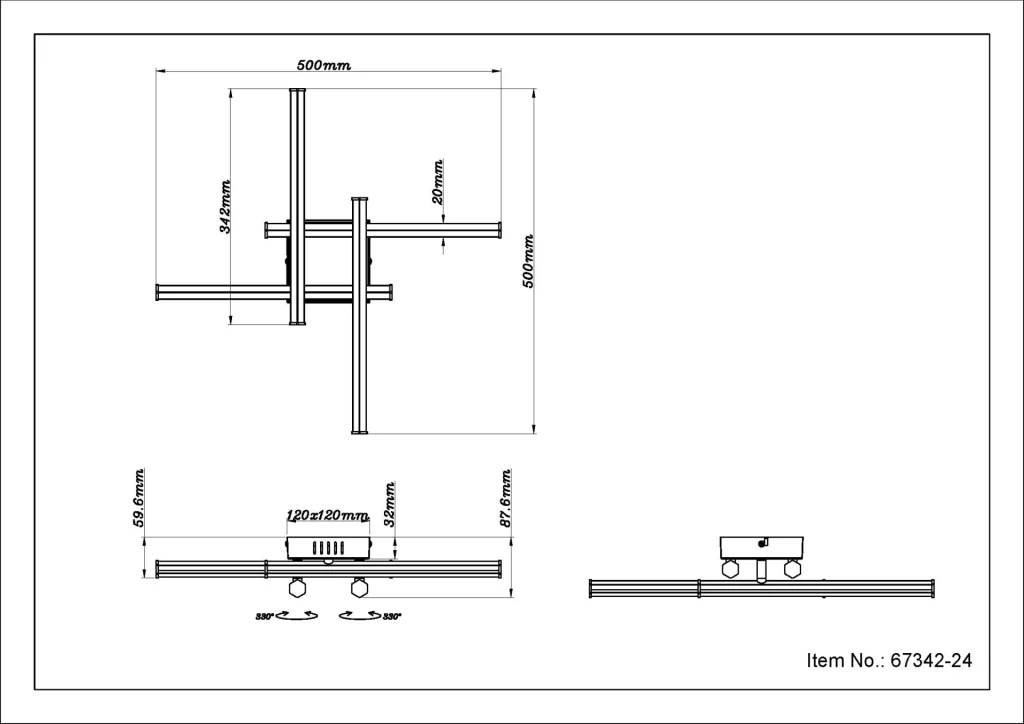 Plafonska lampa KIRINA dodaje moderne akcente vašoj sobi svojim inovativnim, kvadratnim dizajnom. Opremljena sa četiri rotirajuća heksagonalna profila, ova svetiljka nudi fleksibilna rešenja za osvetljenje koja se mogu prilagoditi. Telo napravljeno od crne, mat plastike i abažur od crne i opal plastike kombinuju se kako bi stvorili elegantnu celokupnu sliku. Sa veličinom od 500 mm x 500 mm, plafonska lampa KIRINA se savršeno uklapa u velike prostorije kao što su dnevne sobe, kancelarije ili kuhinje. Moćna LED tehnologija pruža impresivan snaga lumena od 1470 i toplu temperaturu boje od 3000 K, što obezbeđuje prijatno i ravnomerno osvetljenje. Moderan dizajn i visoka funkcionalnost čine KIRINU idealnim izborom za stilsko i efikasno rešenje za osvetljenje u vašem domu.