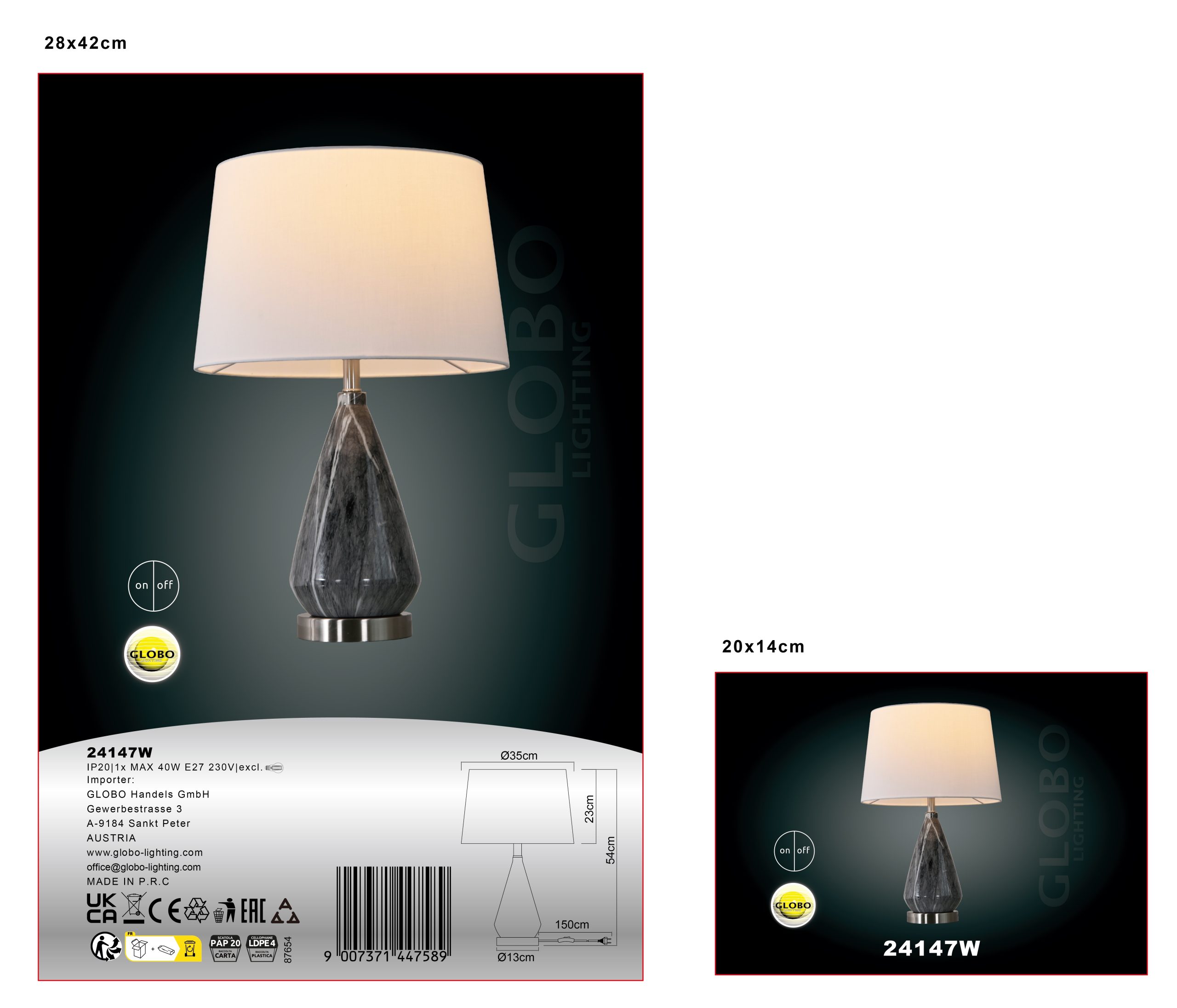 Otkrijte eleganciju naše nove stone lampe: STONA LAMPA METAL NIKL MAT. Njen okrugli dizajn je poboljšan lukovičastim metalnim postoljem u plemenitom mermernom izgledu, koje unosi dašak luksuza u svaku prostoriju. Telo napravljeno od mat nikl metala daje lampi moderan i atraktivan izgled, dok beli tekstilni abažur pruža meko i difuzno svetlo. Sa prekidačem na kablu, rukovanje ovom lampom je posebno jednostavno i praktično. Prečnik od 350 mm i snaga od 40W čine ih idealnim za širok spektar površina stola. Kombinacija nikl-metala i mermernog efekta daje ovoj stonoj lampi jedinstven šarm koji dodaje stilski dodir svakoj prostoriji. Unesite komadić bezvremenske elegancije u svoj dom uz STONU LAMPU METAL NIKL MAT i uživajte u prijatnom osvetljenju u svakoj prostoriji.