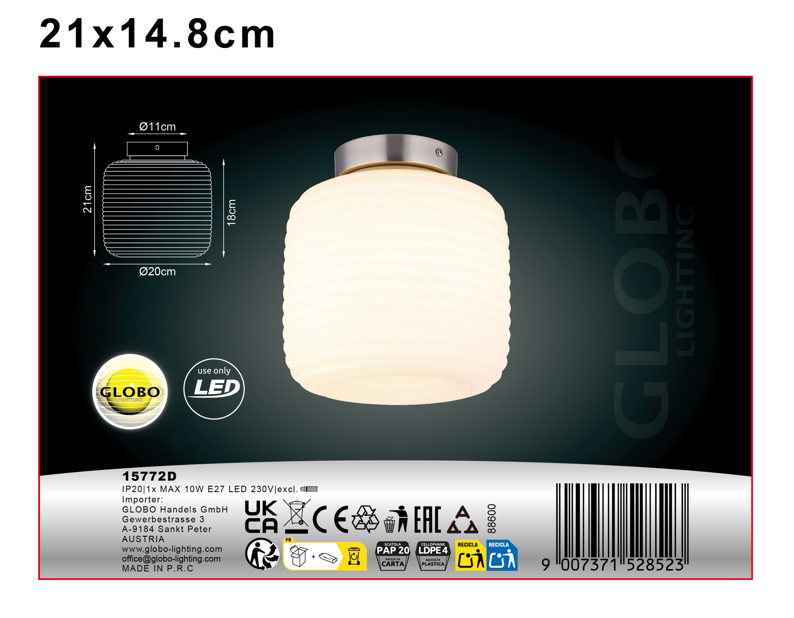 Plafonska lampa KLADORA kombinuje moderan dizajn sa funkcionalnim osvetljenjem i postavlja stilske akcente u svakoj prostoriji. Okruglo, lukovičasto staklo sa elegantnim žlebovima obezbeđuje ravnomernu raspodelu svetlosti i prijatnu atmosferu. Telo napravljeno od mat nikl metala daje lampi elegantan i savremen izgled koji se harmonično uklapa u različite koncepte prostorija. Abažur od opalnog stakla pruža meko, difuzno svetlo koje udobno osvetljava prostoriju. Sa prečnikom od 200 mm, lampa je posebno pogodna za manje prostorije, hodnike ili kao akcentno osvetljenje u većim prostorijama. Plafonska lampa KLADORA se isporučuje bez E27 LED sijalica, tako da možete izabrati pravo osvetljenje prema vašim potrebama. Savršen je izbor za svakoga ko želi da kombinuje funkcionalno osvetljenje sa modernim, elegantnim dizajnom.