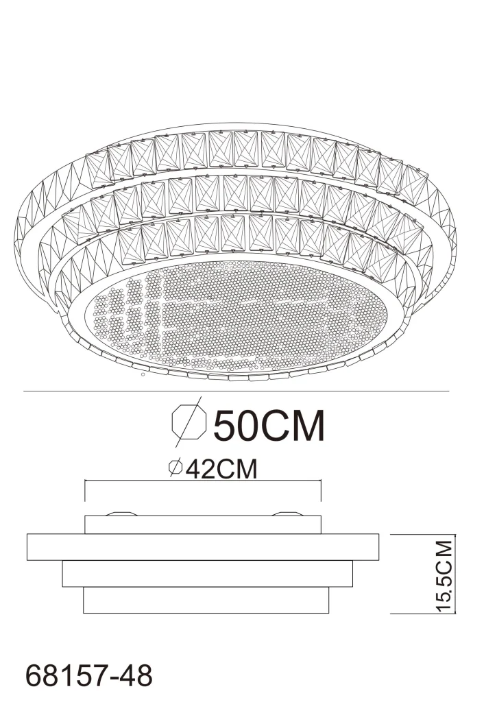 HROMIRANA METALNA PLAFONSKA LAMPA je elegantna i moderna okrugla plafonska lampa koja unosi dašak luksuza u svaku prostoriju svojim kristalnim dekorom napravljenim od providnih akrilnih kristala. Hromirano metalno kućište i visokokvalitetni materijali pružaju moderan izgled. Sa prečnikom od 500 mm i snagom od 48 W, ova plafonska lampa proizvodi jak svetlosni fluks od 3120 lumena, što pruža svetlo i prijatno osvetljenje. HROMIRANA METALNA PLAFONSKA LAMPA je prigušljiva i može se podesiti na različite nivoe osvetljenosti pomoću zidnog prekidača. Pomoću priloženog daljinskog upravljača možete podesiti i temperaturu boje od 2700K do 6000K i fiksirati boju svetlosti. Ugrađena funkcija memorije čuva vaša željena podešavanja, dok funkcija noćnog svetla pruža meko svetlo u mraku. Unesite stil i eleganciju u svoj dom pomoću ove izvrsne plafonske lampe i uživajte u prilagodljivom osvetljenju.