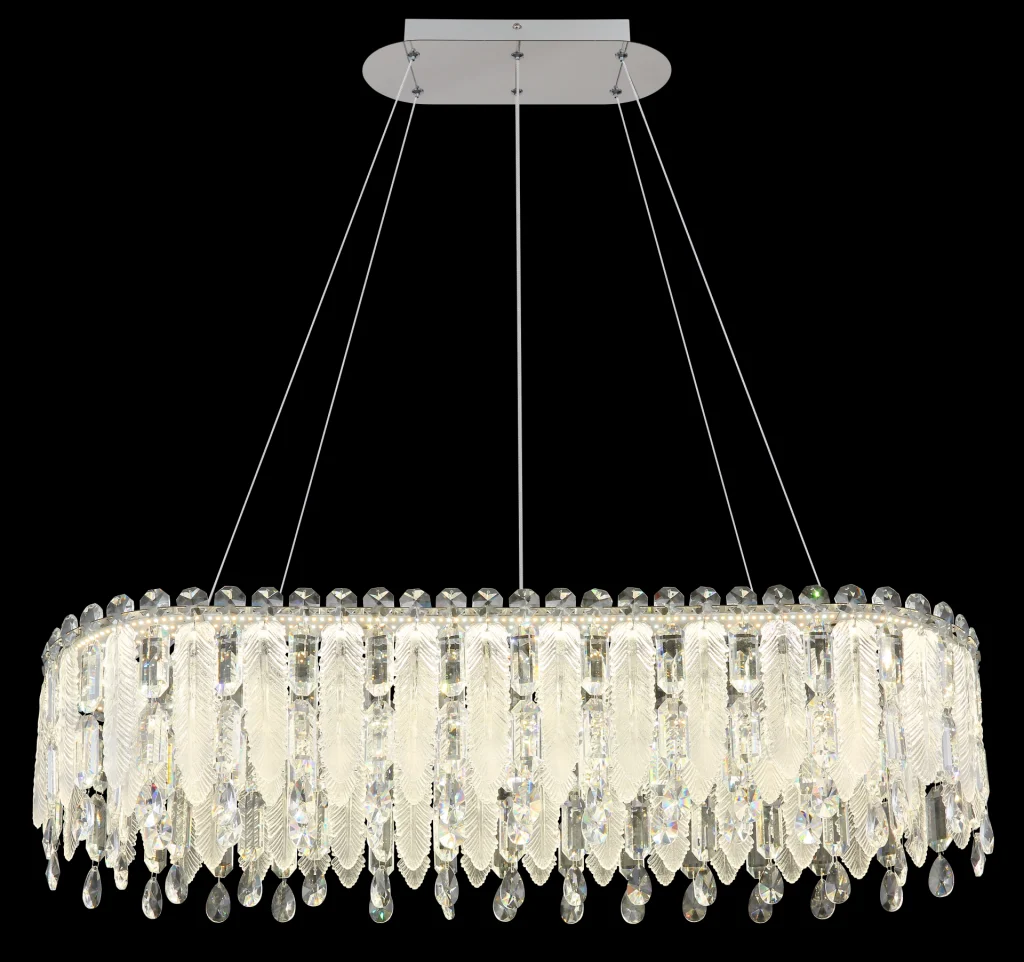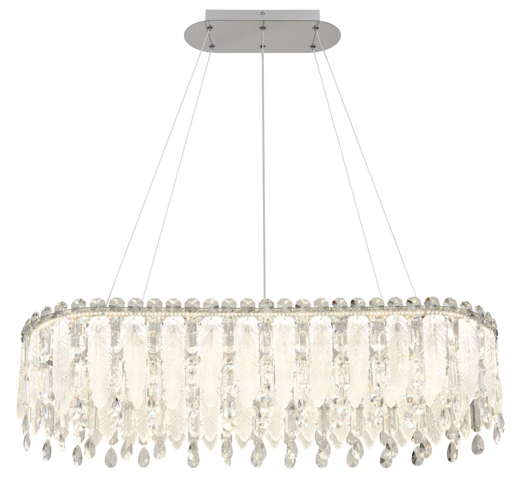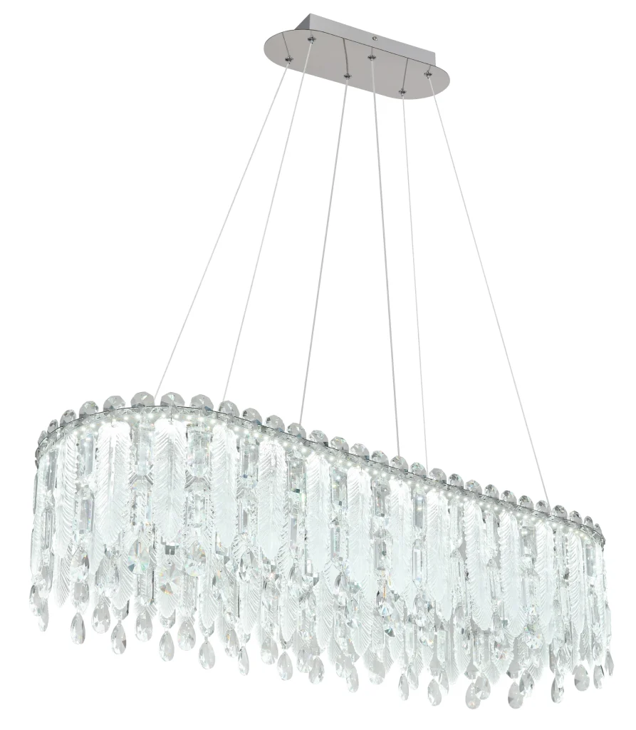 Pravougaona viseća lampa napravljena od hromiranog metala je luksuzan i moderan detalj za vaš dom. Njeno dizajnersko telo i abažur napravljeni od providnih K5 kristala daju lampi plemenit izgled i impresivan sjaj. Viseća lampa dolazi u kompletu sa daljinskim upravljačem koji vam omogućava da prigušite osvetljenost, fiksirate boje, podesite različite nivoe, pa čak i koristite funkciju memorije. Pored toga, svetiljka ima funkciju noćnog svetla za meko osvetljenje noću. Sa dužinom od 1000 mm i širinom od 360 mm, svetiljka nudi visoku svetlosnu efikasnost od 70 W i izlaz od 4500 lumena. Raspon temperature boje je od 2700K do 6000K, tako da možete podesiti svetlost prema vašim individualnim potrebama. Ova viseća lampa nije samo rešenje za osvetljenje, već i umetnički dekorativni element za svaku prostoriju.