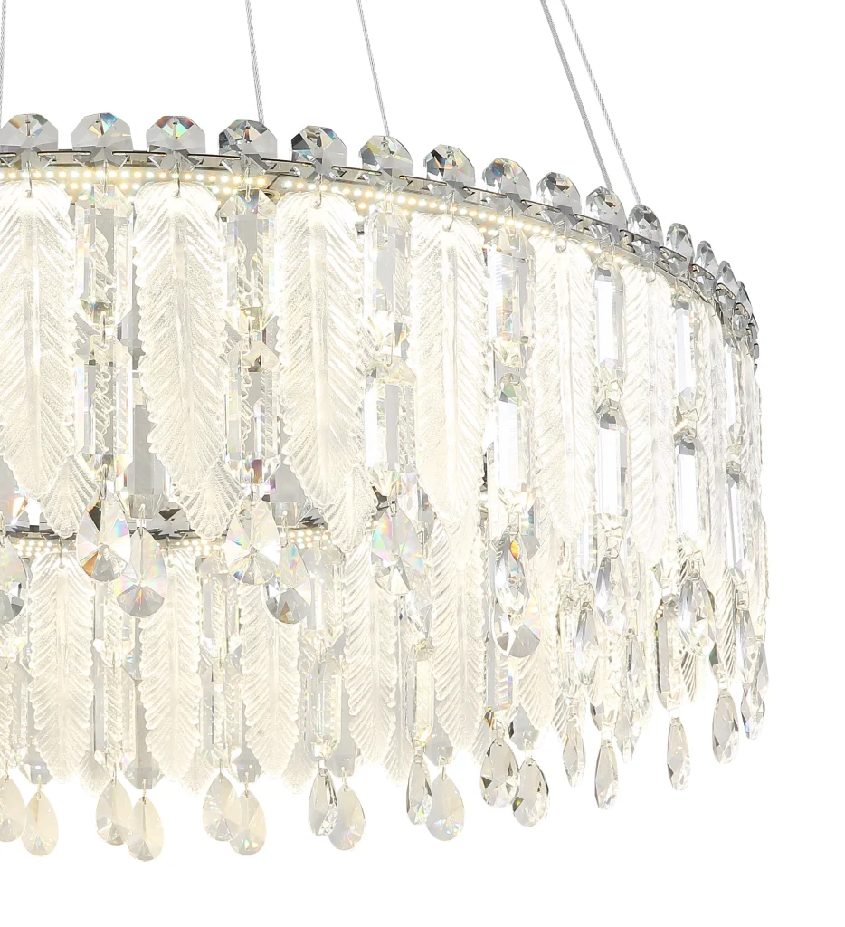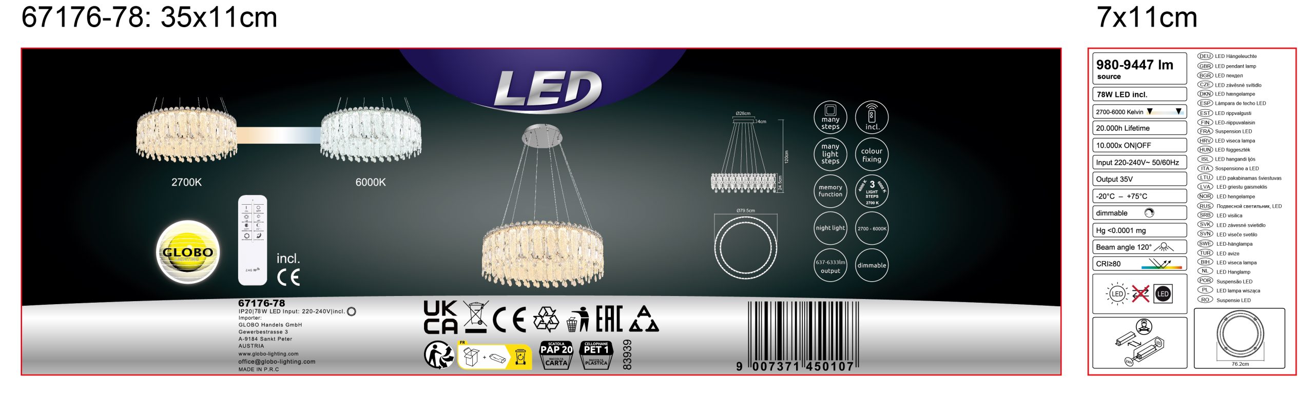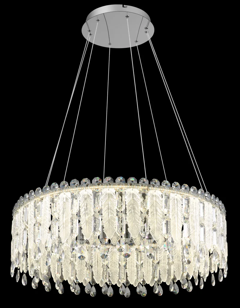Elegantna okrugla viseća lampa KLUNKA METAL CHROME kombinuje moderan dizajn sa visokokvalitetnim materijalima. Hromirano metalno kućište i blistavi K5 kristal koji visi u providnom izgledu daju ovoj visećoj lampi luksuzan izgled. Sa velikodušnim prečnikom od 800 mm i snagom od 78 W, proizvodi impresivan svetlosni fluks od 5070 lumena, pružajući svetlo i privlačno osvetljenje. Visilica KLINKA se može prigušiti i podesiti u nekoliko koraka pomoću zidnog prekidača. Zahvaljujući priloženom daljinskom upravljaču, možete podesiti temperaturu boje od 2700K do 6000K i fiksirati boju svetlosti. Ugrađena funkcija memorije čuva vaša željena podešavanja, dok funkcija noćnog svetla pruža meko svetlo u mraku. Unesite stil i funkcionalnost u svoj dom pomoću ove izvrsne viseće lampe i uživajte u prilagodljivom osvetljenju.