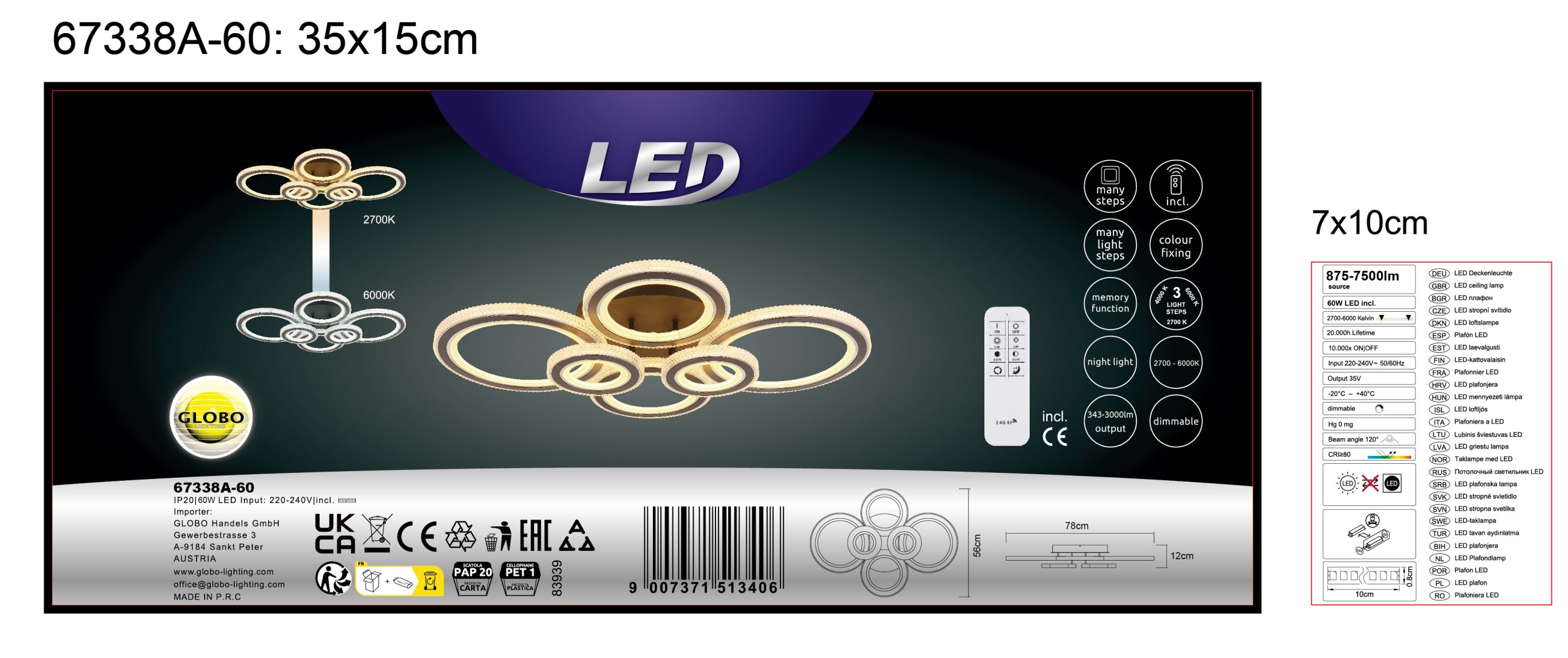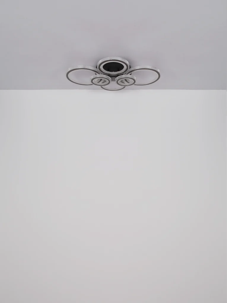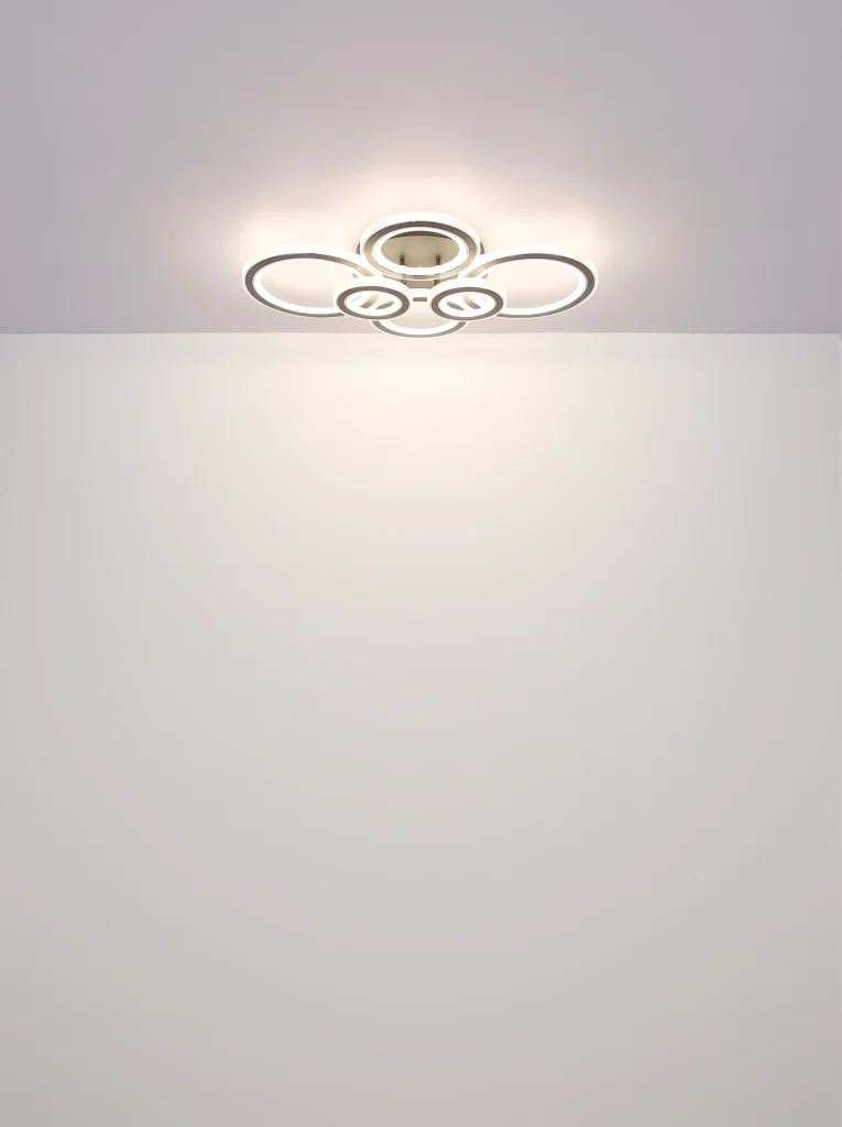 Plafonska lampa Kora ubeđuje svojim modernim, pravougaonim dizajnom i 6 pomeranih prstenova. Telo od mat crnog metala i abažur od antracit-mat metala i opal akrila pružaju elegantno osvetljenje. Svetlo se može prigušiti i omogućava vam da fiksirate boje. Sa funkcijom memorije i noćnim svetlom, nudi svestrani dizajn osvetljenja. Svetlosni izlaz od 2890 lumena i CCT od 2700 K do 6000 K pružaju prijatno osvetljenje u svakoj prostoriji.