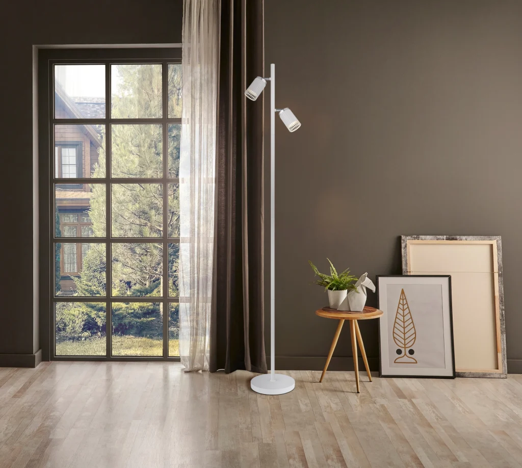 Kombinujući moderan dizajn sa funkcionalnim osvetljenjem, podna lampa KORBEN je stilski dodatak svakoj prostoriji. Sa svoja dva cilindrična abažura postavljena na elegantne šipke i otvorena sa prednje strane, nudi ciljanu, direktnu distribuciju svetlosti. Mat belo metalno kućište se savršeno usklađuje sa mat aluminijumskim abažurima, koji su poboljšani hromiranim akcentima. Sa dužinom od 275 mm i širinom od 220 mm, podna lampa KORBEN je idealna za dnevne sobe, kancelarije ili kutke za čitanje. Opremljena sa dva GU10 LED reflektora, pruža energetski efikasno i prijatno osvetljenje. Praktični nožni prekidač u kablu omogućava lako rukovanje. Minimalistički, okrugli dizajn se bez napora uklapa u moderne stilove enterijera, stvarajući elegantnu atmosferu. PODNA LAMPA KORBEN je savršen izbor za funkcionalno i stilsko rešenje za osvetljenje u vašem domu.