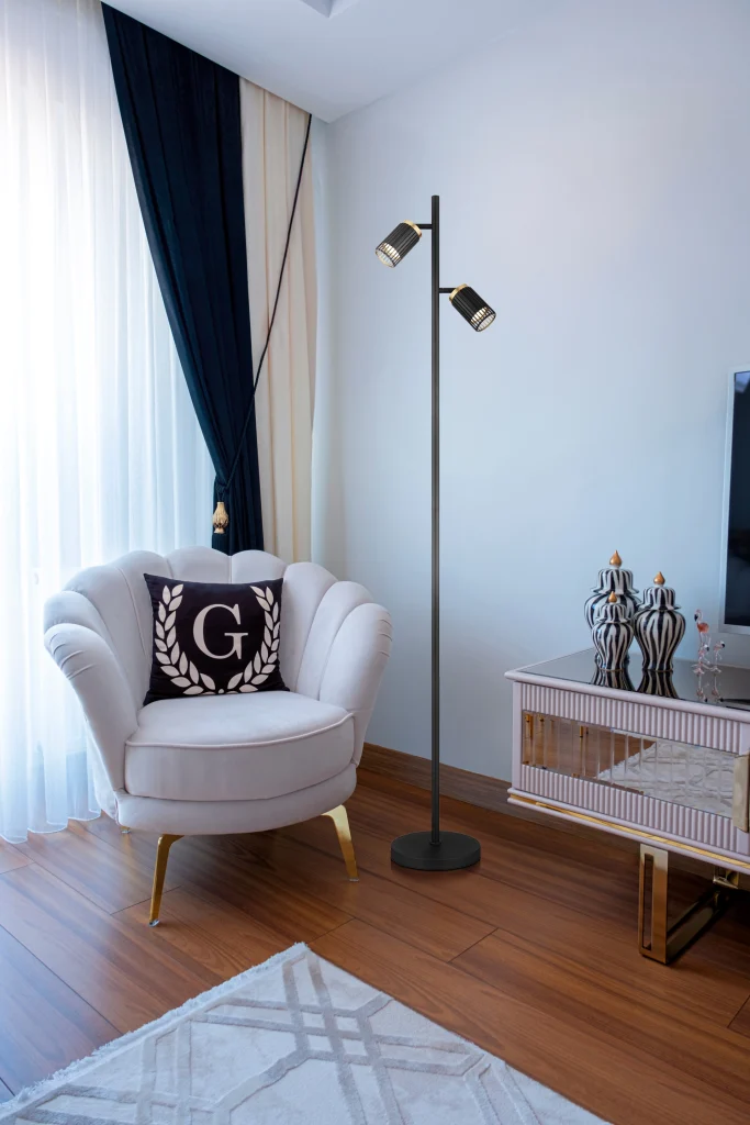 Podna lampa KORBEN kombinuje moderan dizajn sa praktičnom funkcionalnošću i predstavlja pravi ukras u svakoj dnevnoj sobi. Sa svojim okruglim telom i dva cilindrična abažura koja su otvorena napred, ova lampa obezbeđuje ciljanu raspodelu svetlosti i stvara prijatnu atmosferu. Telo napravljeno od mat crnog metala daje podnoj lampi elegantan i bezvremenski izgled. Kombinacija mat crne boje i zlatnog aluminijuma za abažure ne samo da donosi stilske akcente vašem enterijeru, već i obezbeđuje atraktivan odsjaj svetlosti. Opremljena GU10 LED sijalicama i praktičnim nožnim prekidačem u kablu, svetiljka je jednostavna za rukovanje. Idealna za dnevne sobe, kutke za čitanje ili kancelarije, podna lampa KORBEN stvara toplo svetlo koje vas poziva da se zadržite. Unesite dašak sofisticiranosti i stila u svoj dom uz ovu elegantnu rasvetu.