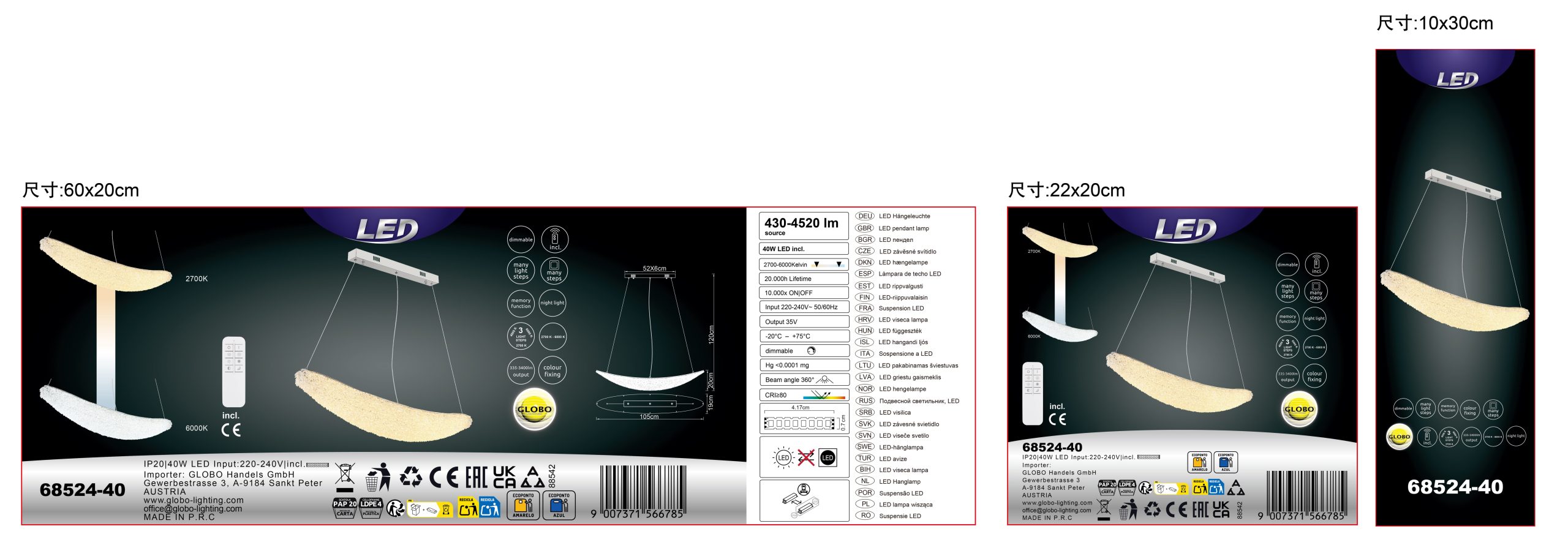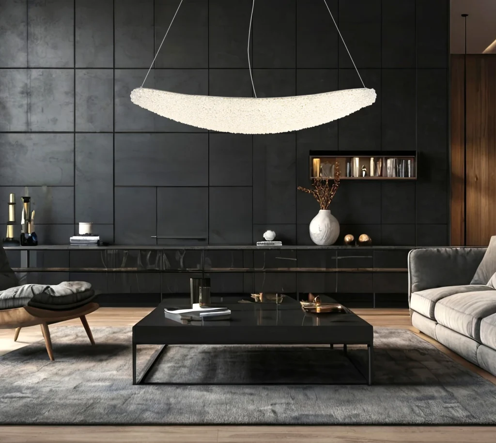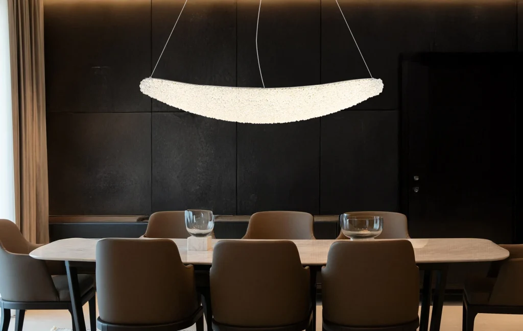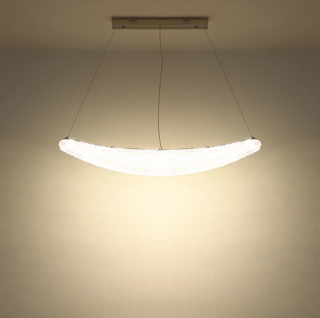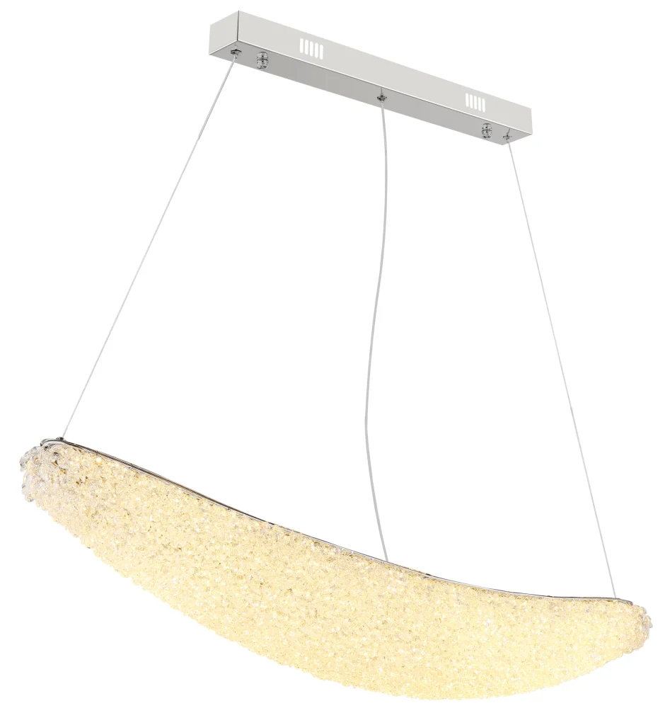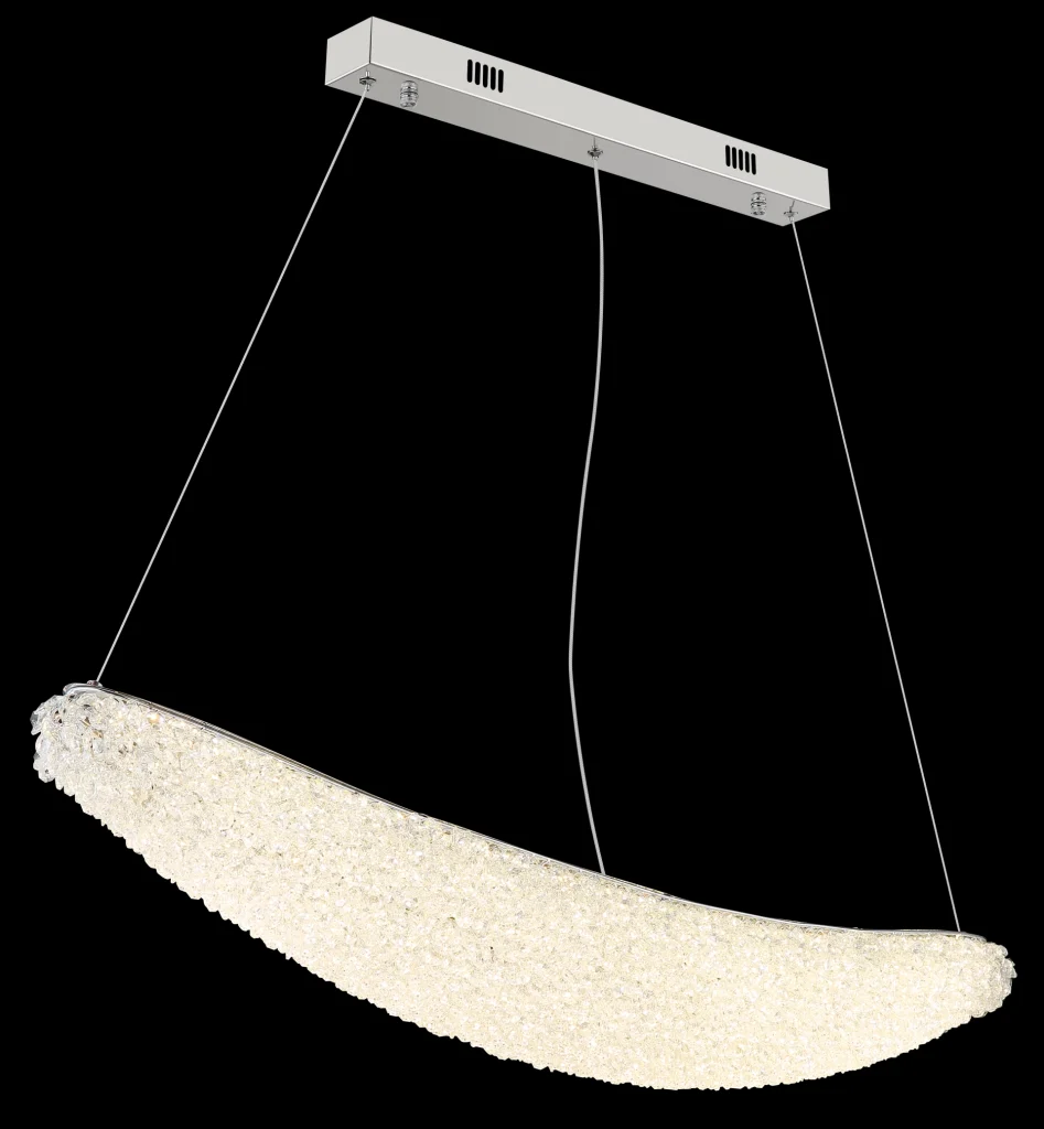 Ovalna viseća lampa KRISTALLA kombinuje elegantan dizajn sa visokokvalitetnom tehnologijom osvetljenja. Njeno telo napravljeno od hrom metala daje lampi moderan, sofisticiran izgled, dok abažur od providnih staklenih kristala stvara briljantnu, blistavu svetlost. Raspodela svetlosti je ravnomerna i stvara impresivnu atmosferu u dnevnim sobama, trpezarijama ili reprezentativnim prostorima. Sa dužinom od 1100 mm i širinom od 200 mm, lampa pruža izdašno osvetljenje sa 3900 lumena. Integrisana LED tehnologija (uključena) obezbeđuje energetsku efikasnost i dug vek trajanja. Upravljanje je praktično pomoću priloženog daljinskog upravljača: može se prigušiti, sa fiksnim bojama, funkcijom memorije i podesivom temperaturom boje od 2700 K do 6000 K. Ovo omogućava prilagođavanje osvetljenja od toplog ambijentalnog svetla do dnevne bele boje po potrebi. Kombinacija elegantnog hroma, blistavih kristala i moderne LED tehnologije čini KRISTALLA pravim centralnim delom.