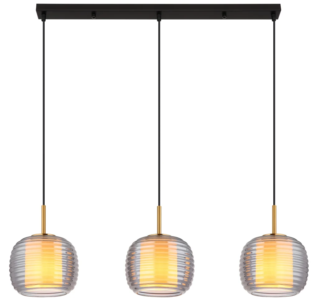 Otkrijte našu LAMPIGNA , stilsko i moderno rešenje za vaše osvetljenje. Ravna šina ima tri držača koji podržavaju sijalična sočiva sa žlebovima. Ova izdužena viseća lampa nudi jedinstven rezultat osvetljenja zahvaljujući 3XE27 tehnologiji osvetljenja. Telo je napravljeno od mat crnog lakiranog metala, dok je abažur napravljen od metala boje mesinga. Staklo abažura ima dimljenu nijansu, dok je staklo unutar abažura opalno providno. Ova elegantno dizajnirana dizajnerska tačka je savršena za uređenje stambenih prostora, kancelarija ili poslovnih prostorija, nudeći visok standard stila i kvaliteta.