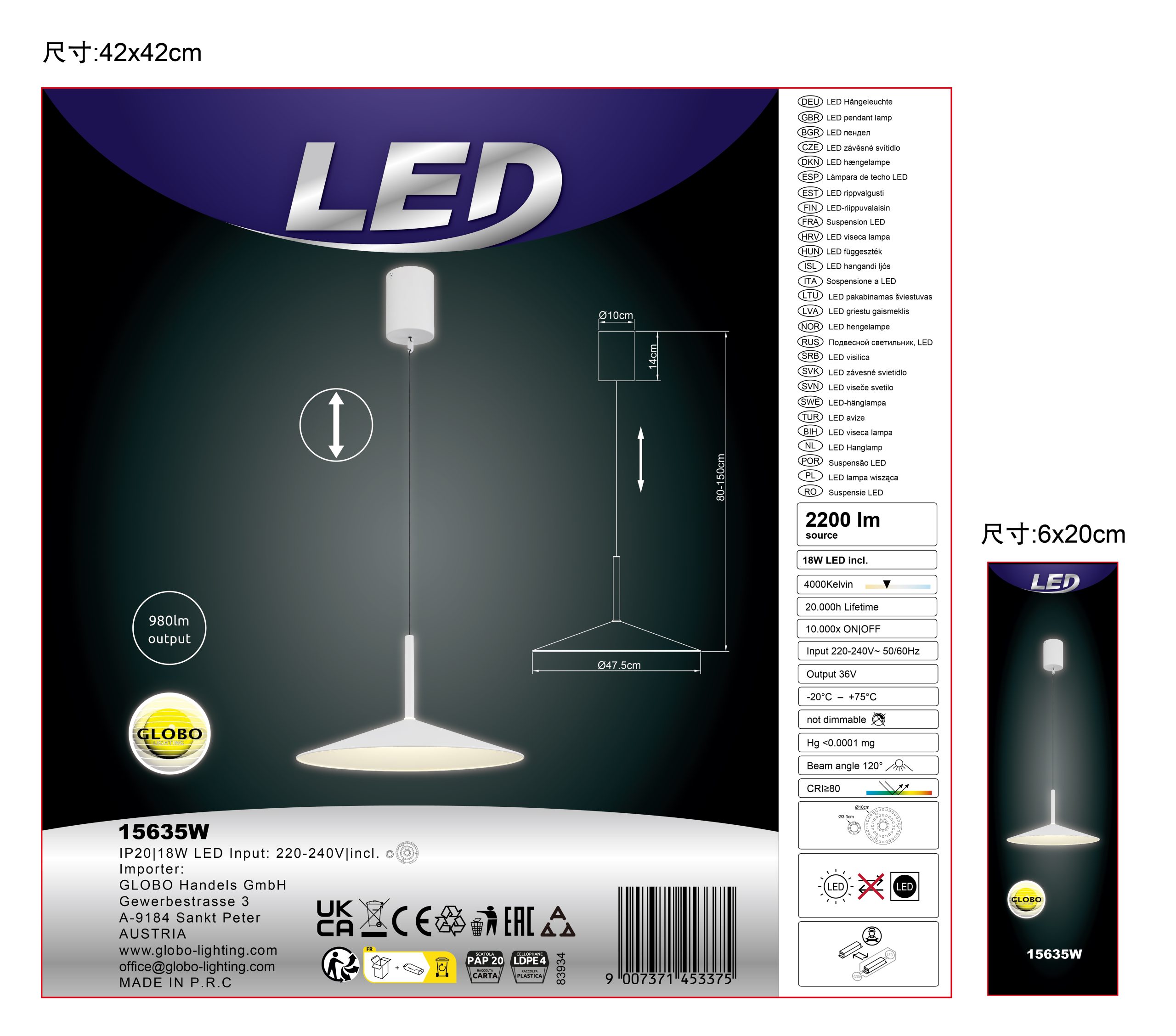 Okrugla viseća lampa u mat beloj boji je moderno i svestrano rešenje za osvetljenje svake prostorije. Sa ravnim abažurom od belog matiranog metala i opal akrila, ova viseća lampa nudi bezvremenski dizajn. Element koji se može podesiti po visini omogućava individualno prilagođavanje viseće lampe potrebama prostorije. Opremljena snažnim LED izvorom svetlosti od 18 W, viseća lampa proizvodi svetao svetlosni fluks od 1000 lumena na prijatnoj temperaturi svetlosti od 4000 K. Sa prečnikom od 480 mm, ova viseća lampa je idealna za upotrebu iznad trpezarijskih stolova, u dnevnim sobama ili drugim prostorijama za život. Mat bela daje lampi elegantan i moderan izgled i besprekorno se uklapa u različite stilove nameštaja. Stilsko rešenje za osvetljenje za privlačan ambijent.