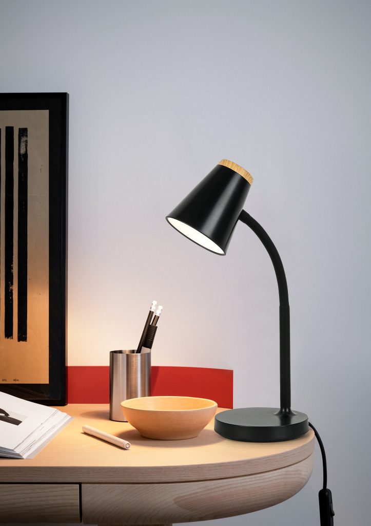 Stona lampa LARRY impresionira svojim jedinstvenim dizajnom u oblikom, koji stvara poseban akcent u svakoj prostoriji. Telo napravljeno od crnog metala daje lampi elegantan i moderan izgled, dok abažur od crnog metala savršeno zaokružuje jasan dizajn. Prekidač na abažuru obezbeđuje lako rukovanje, tako da možete lako uključiti i isključiti svetlo. Stona lampa LARRY ima integrisanu LED sijalucu. Idealna je za moderne dnevne sobe, spavaće sobe ili radne stolove – ova lampa se harmonično uklapa u svaki enterijer i postavlja elegantne akcente. Sa svojim minimalističkim dizajnom i praktičnim rukovanjem, LARRY je stilski dodatak vašem domu.
